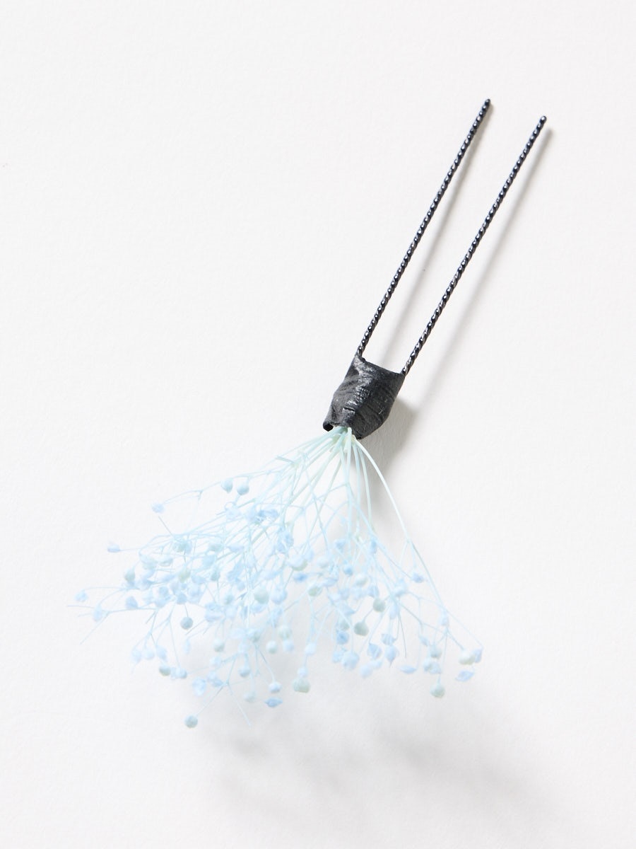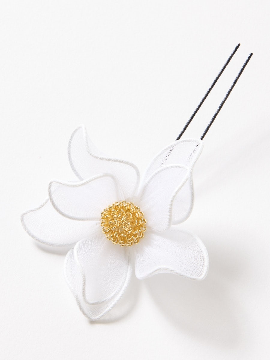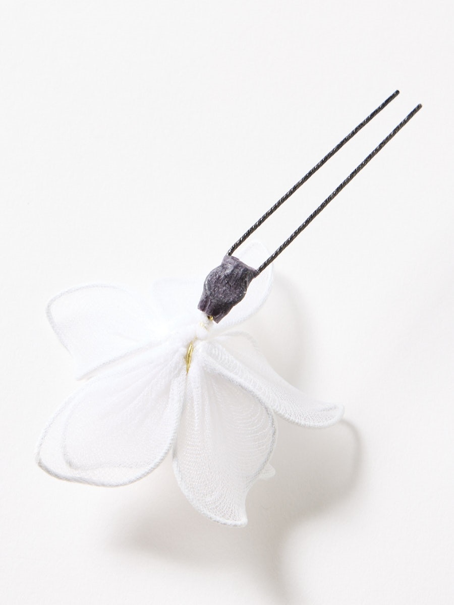 メッシュの白いお花に、カスミソウモチーフのピンがセットになっています。