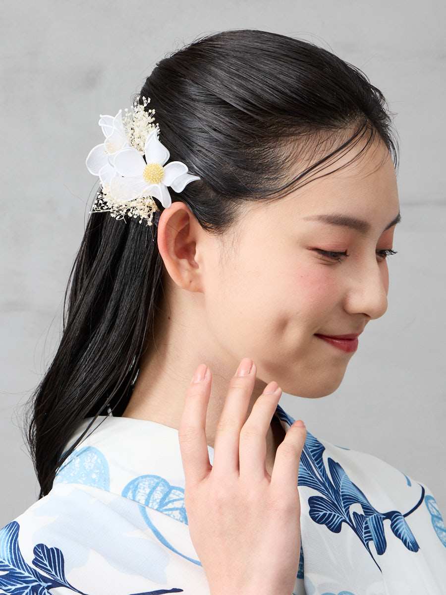 散らして付けるたり、まとめて付けることもでき。アレンジ次第で様々なヘアスタイルに対応します。