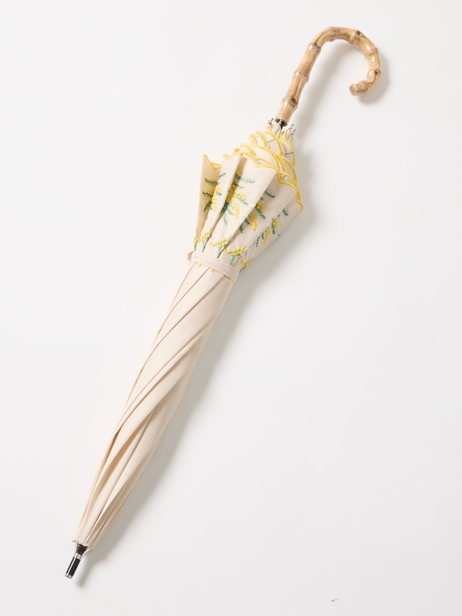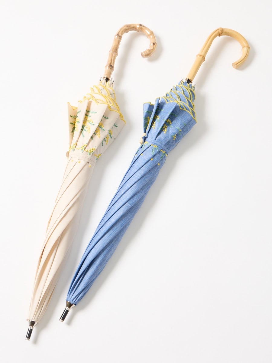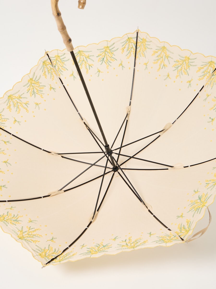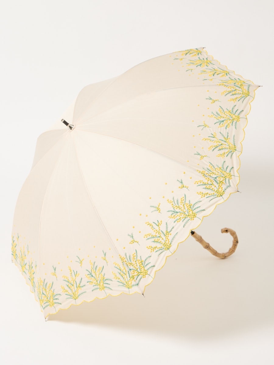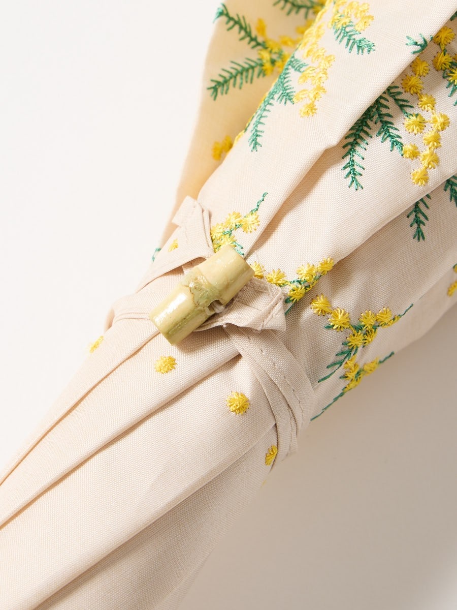 ミモザ刺繍で日差しも雨も楽しく。晴雨兼用傘