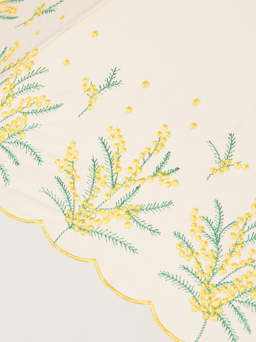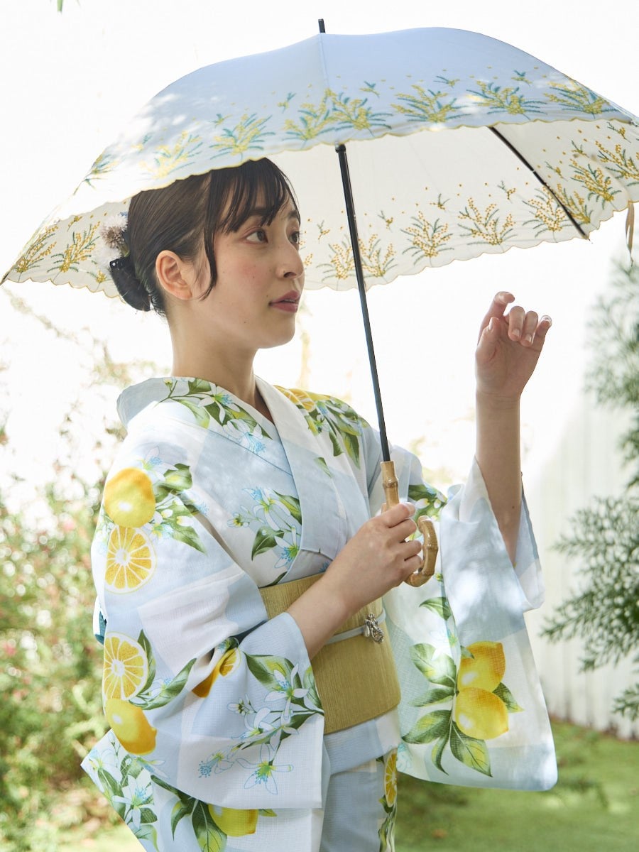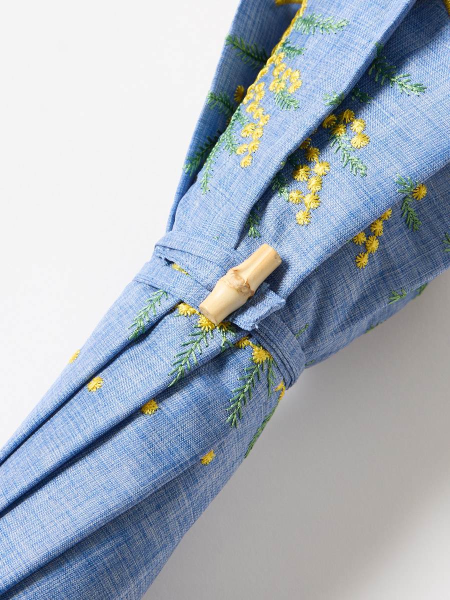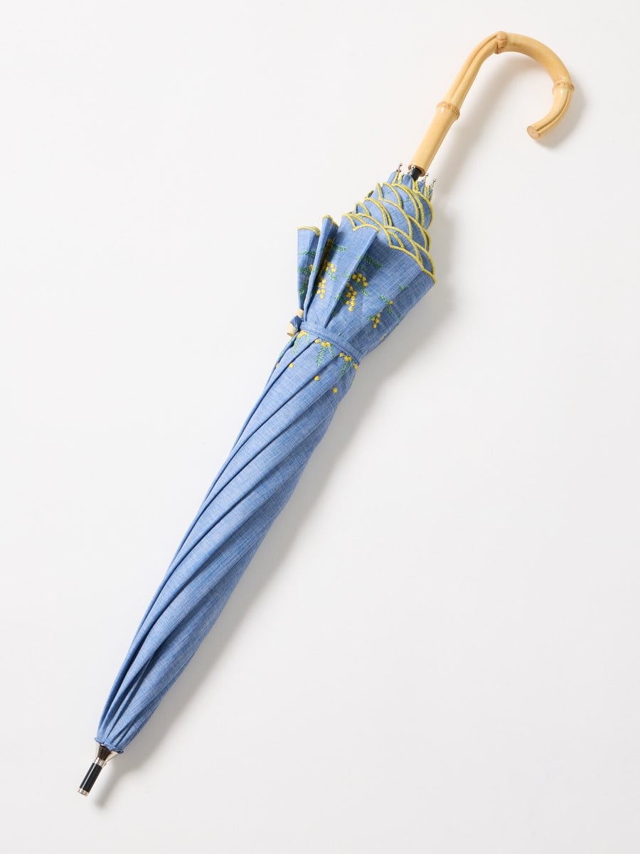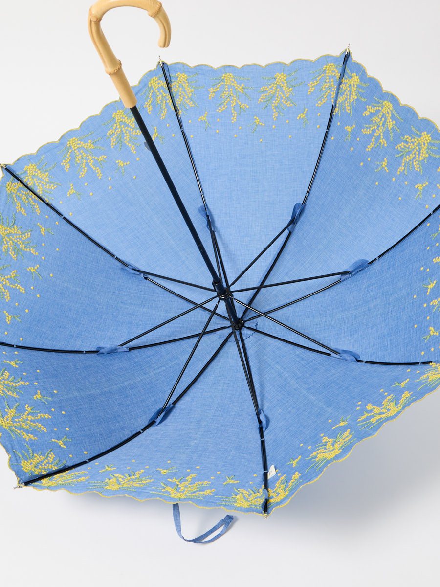 ミモザ刺繍で日差しも雨も楽しく。晴雨兼用傘