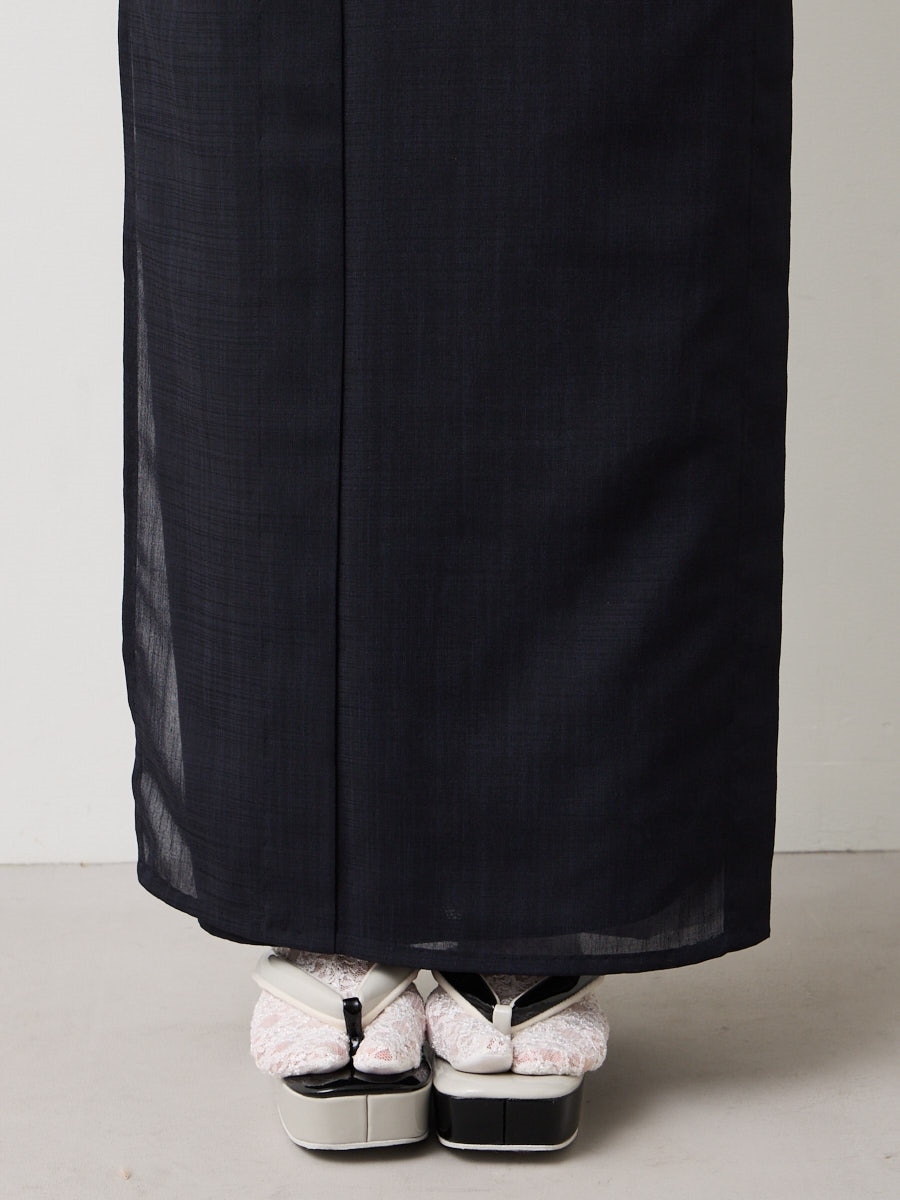 生地の縦横にポリエステルスラブを織り込んだ、紗紬の生地を無地染めに仕上げました。