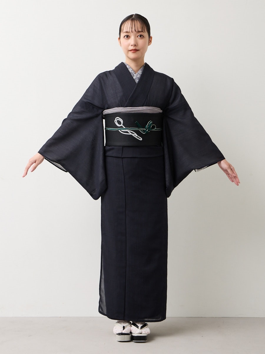 コーディネートが楽しめる無地の単衣着物は、季節の変わり目のおしゃれとして、一枚持っておきたいアイテムです。