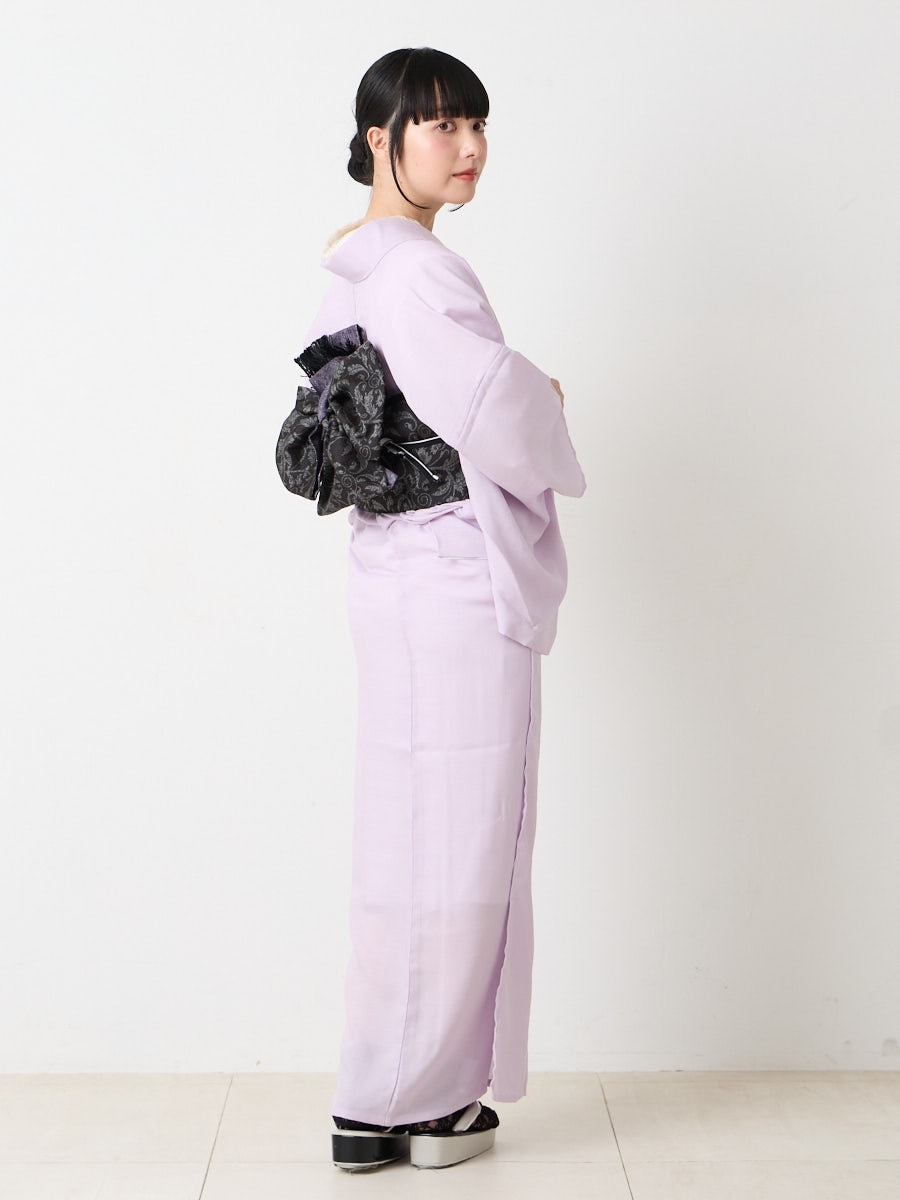 無地感で着こなせるワンカラーのデザインは、合わせる小物次第で表情が自由自在に変わります。 単衣の季節に、お気に入りの半巾帯や名古屋帯をさらりと合わせて。お洋服を選ぶような感覚で、今の自分に心地よくフィットする和装スタイルをぜひ見つけてください。