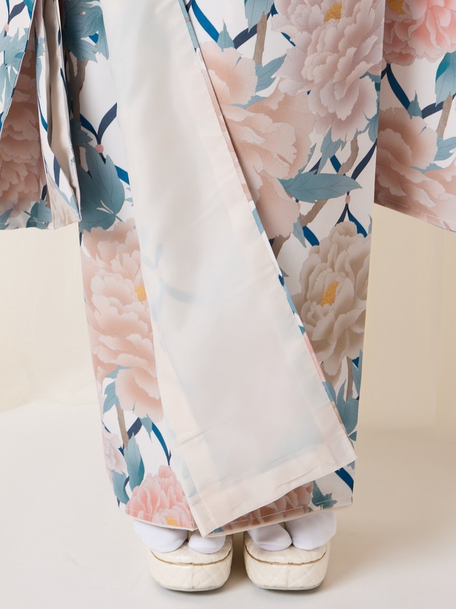 繊細な格子の前面に、咲き誇る大輪の牡丹を贅沢に配置しました。