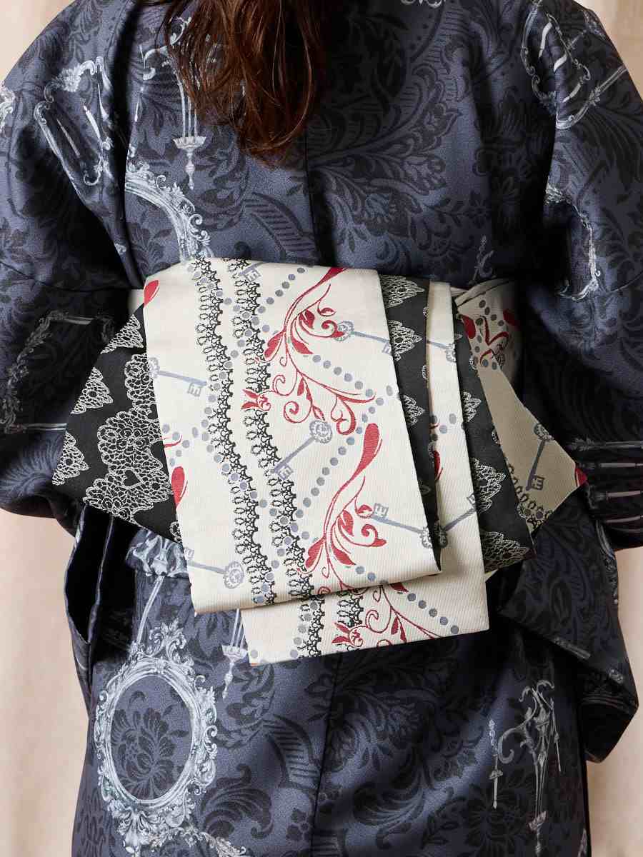 ドラマティックキモノコレクションにぴったりの、わくわくするようなストーリー性溢れる半巾帯をセレクトしました。