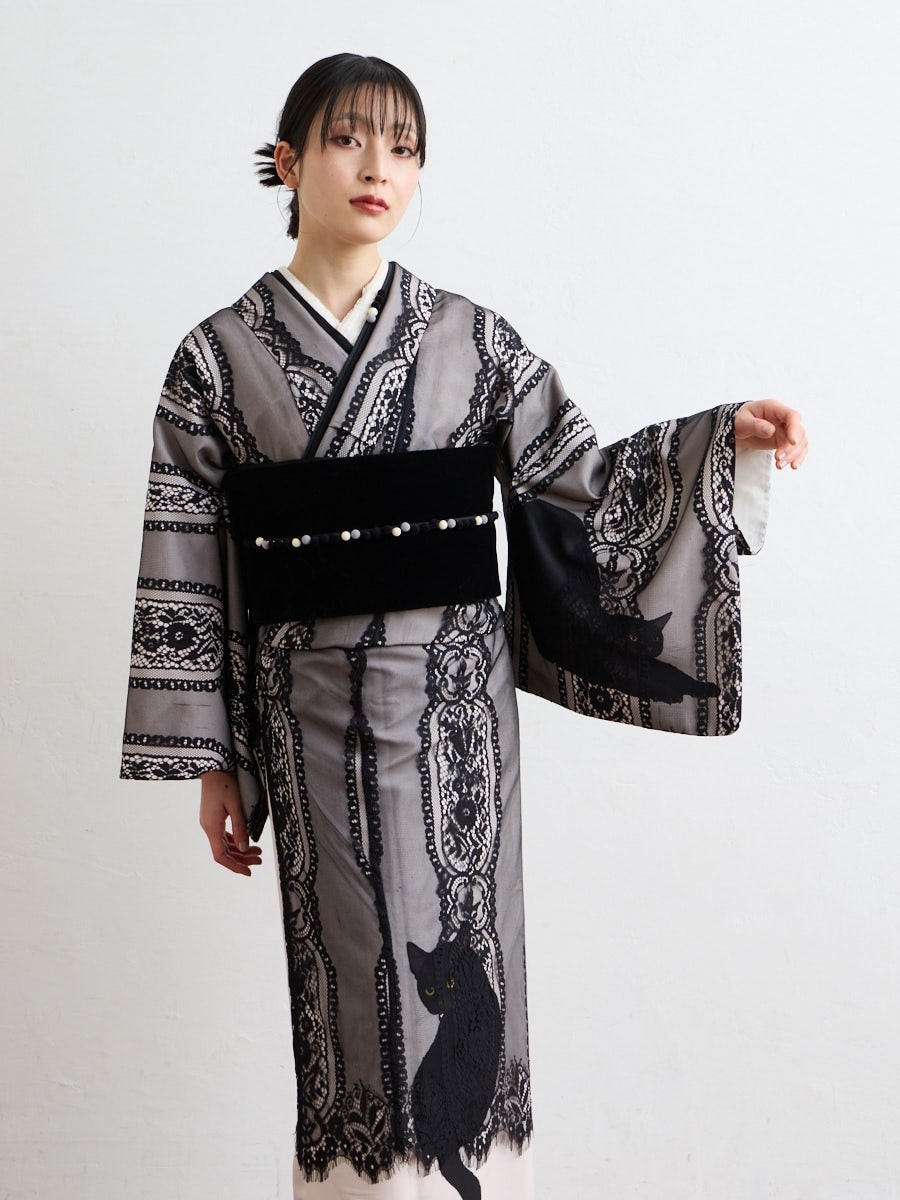 二重仕立て着物「まどろみ猫」に合わせてコーディネートがおすすめ