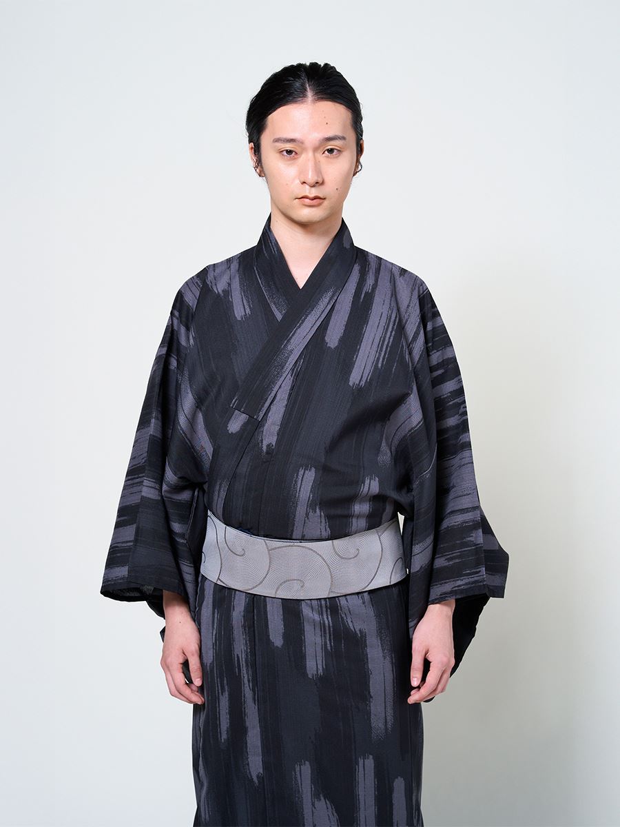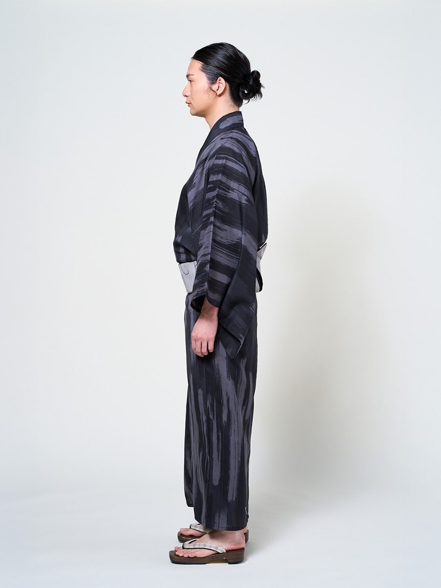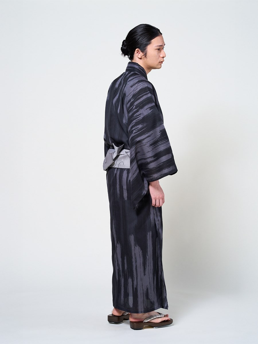 メンズ浴衣単品 「 ハナウタ 墨描き 」