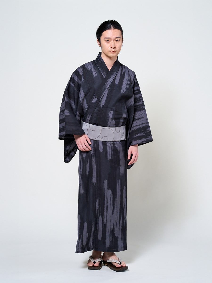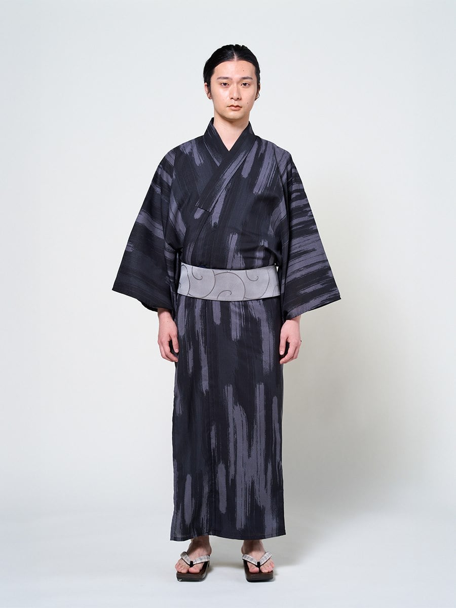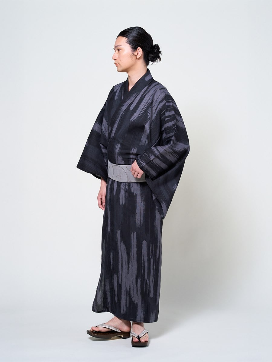 メンズ浴衣単品 「 ハナウタ 墨描き 」