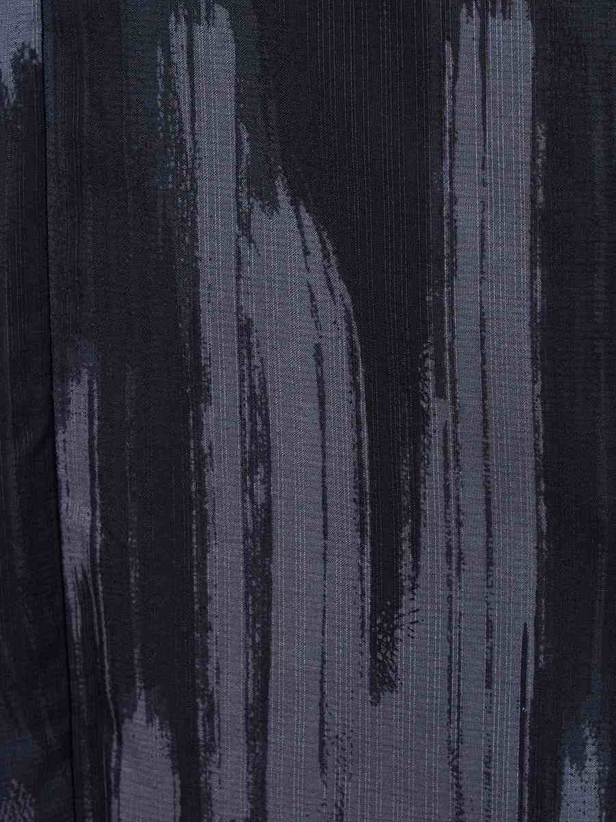 大胆な墨描き柄ながら、同系色ですっきりとした着姿に。