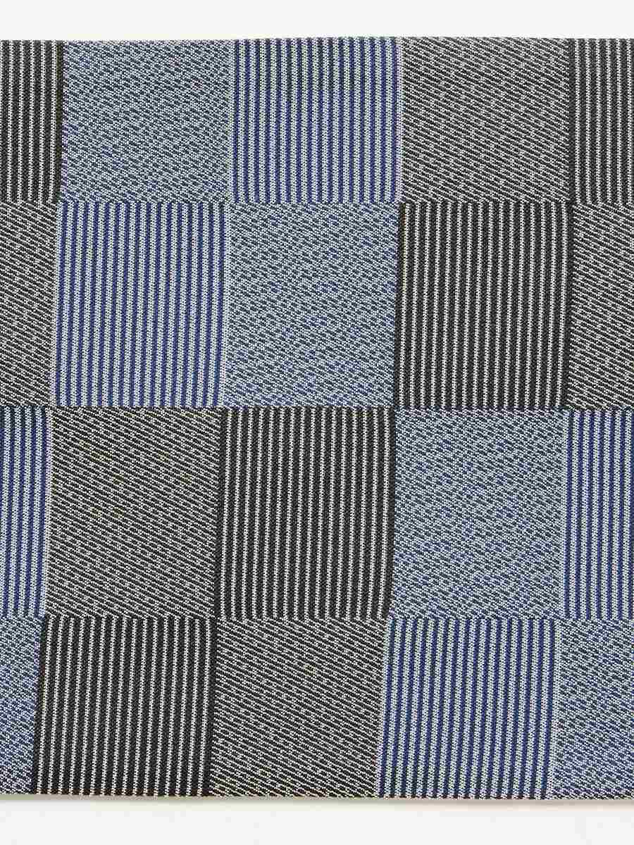 同系色でまとめたサイズ違いの市松柄が重なり合い、さりげない奥行きとリズムを生み出します。