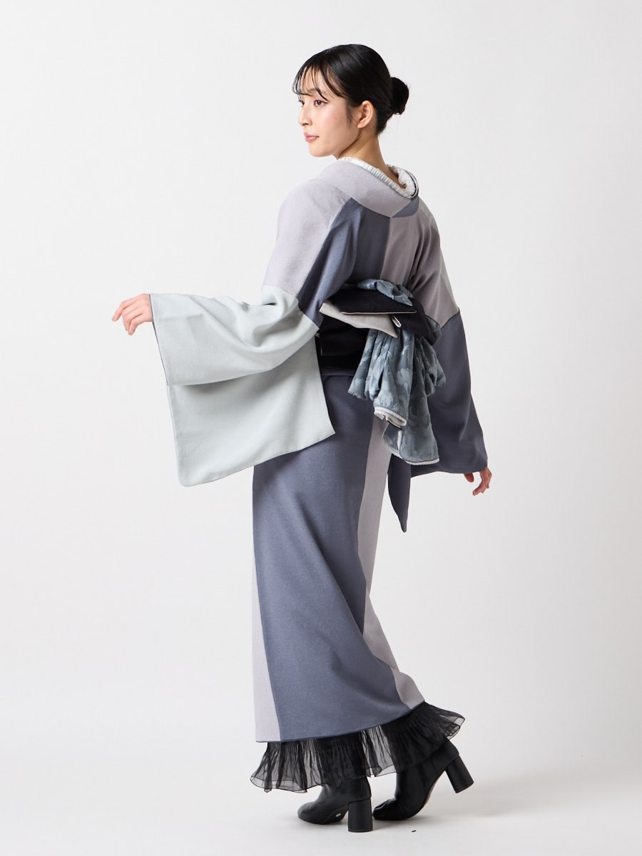 羽織と同じ生地での制作していますので、ワンランク上のお洒落ぎとして、セットアップでのスタイリングもおすすめです。