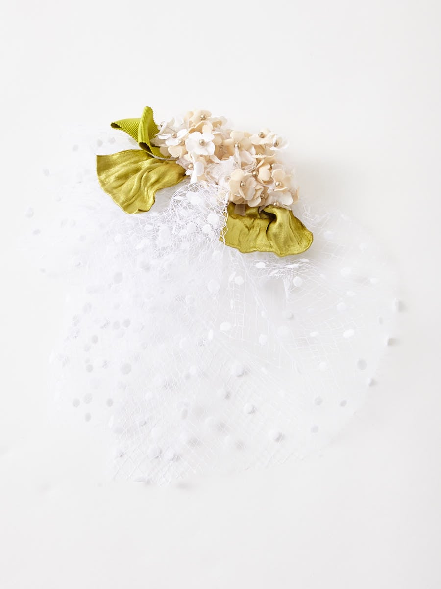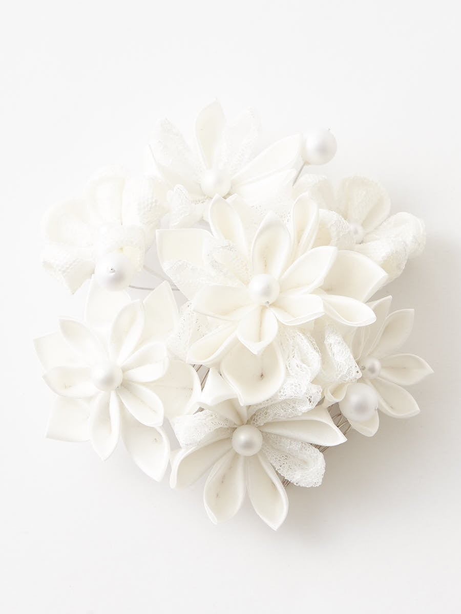 髪飾りはメタルフラワーやパールで華やかに仕上げてみて。