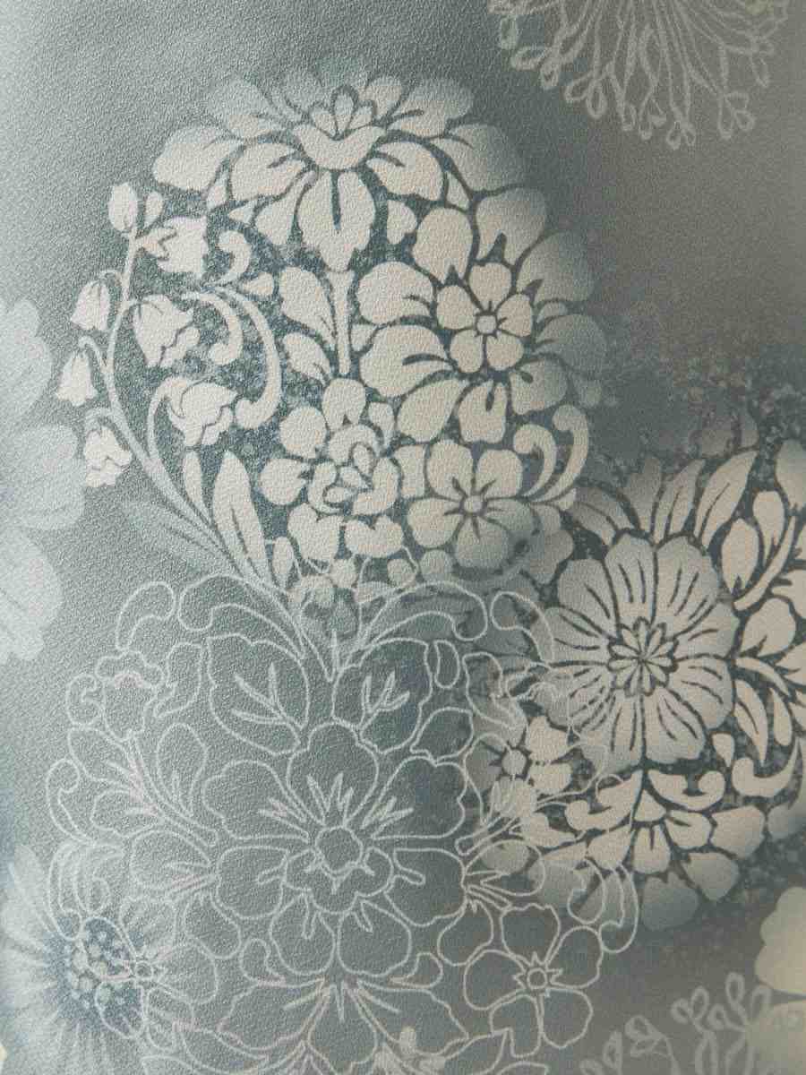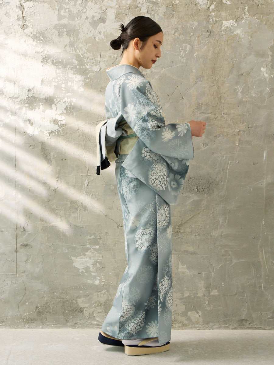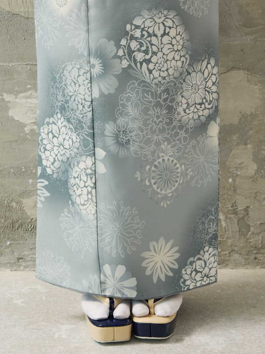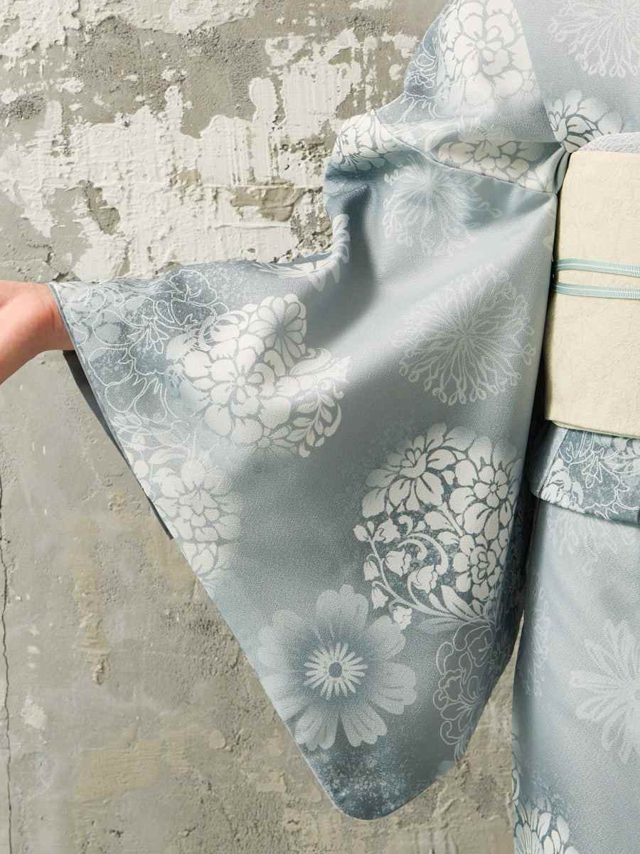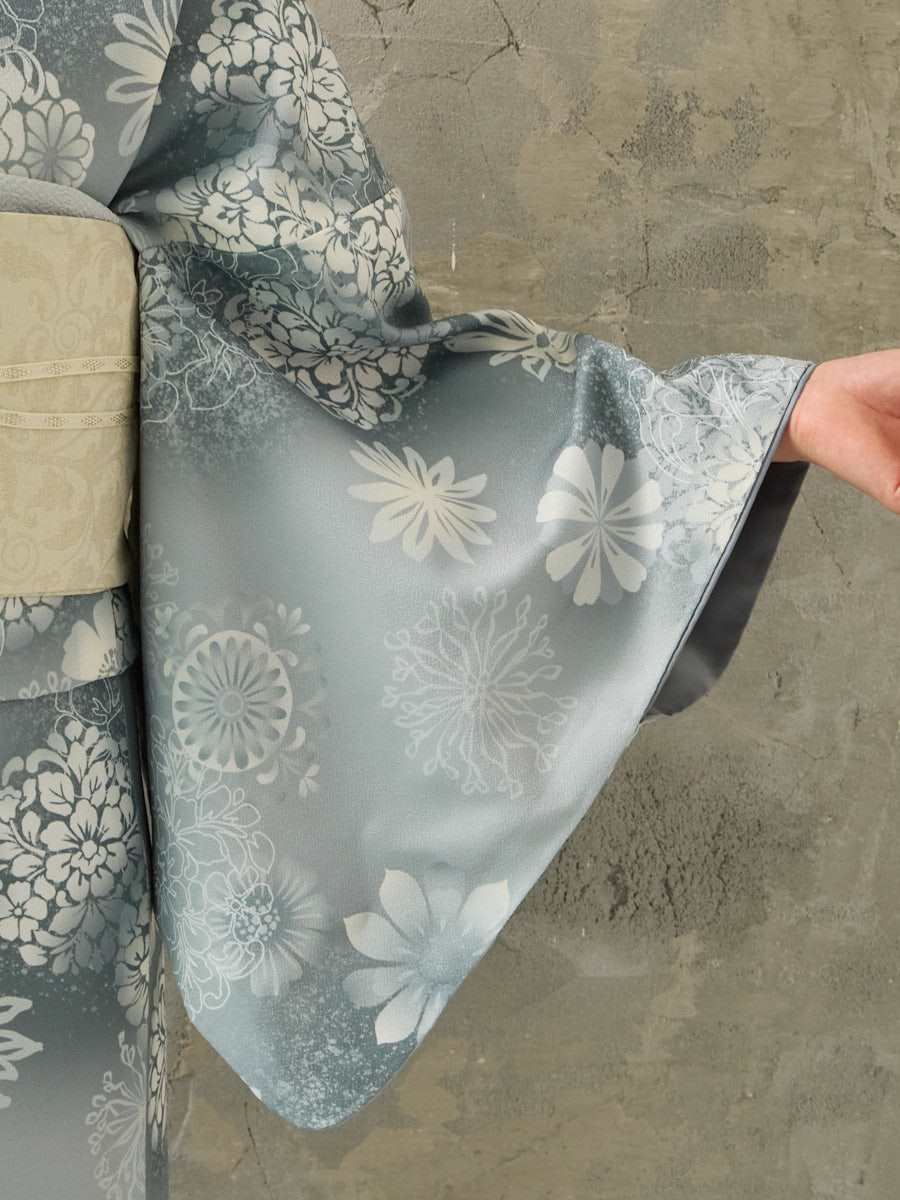 たくさんの花が描かれながらも、どこか儚さがあり、上品な印象でお召しいただけます。