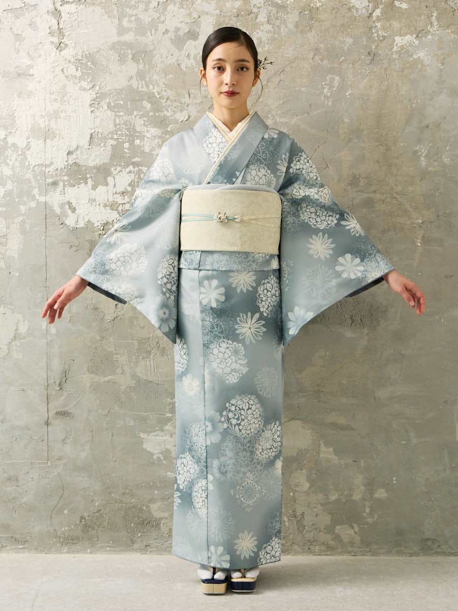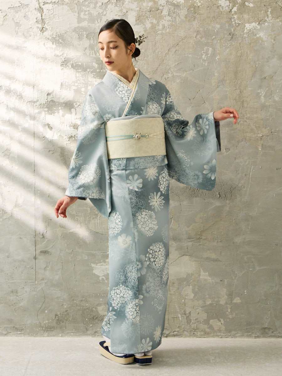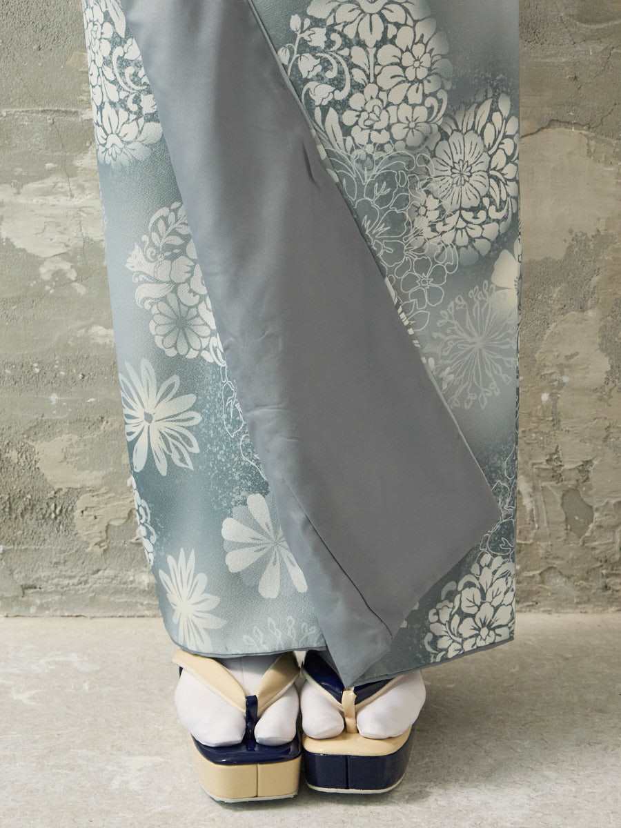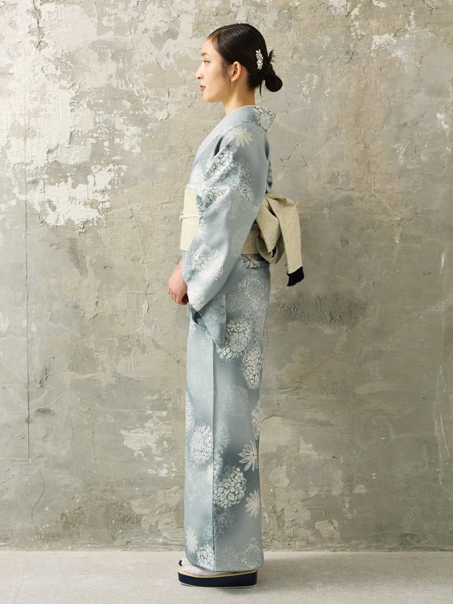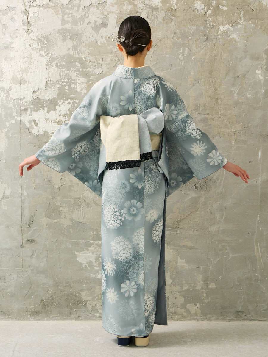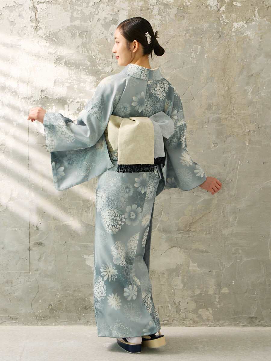 たくさんの花が描かれながらも、どこか儚さがあり、上品な印象でお召しいただけます。