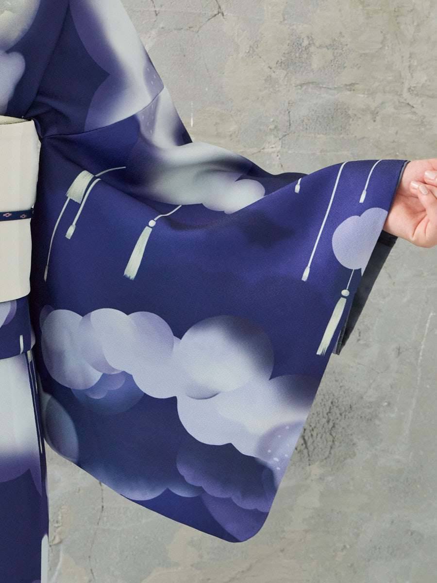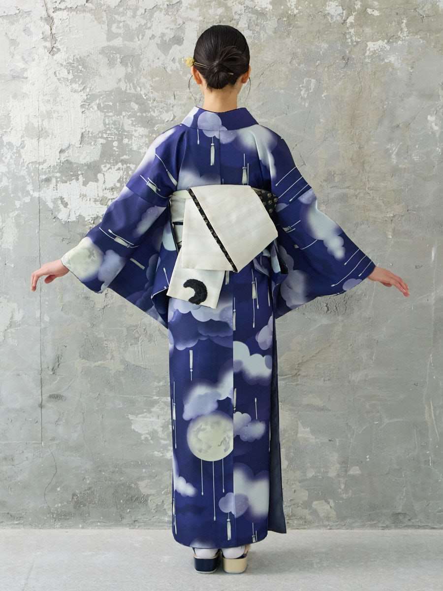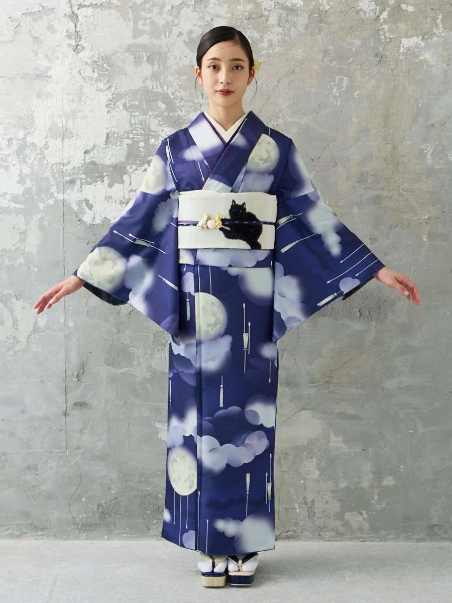 また、スタイリングアイテムとしてデザインされた帯留「見上げ猫」・「月見うさぎ」を合わせると、「お月見雲」のストーリーが完成します。