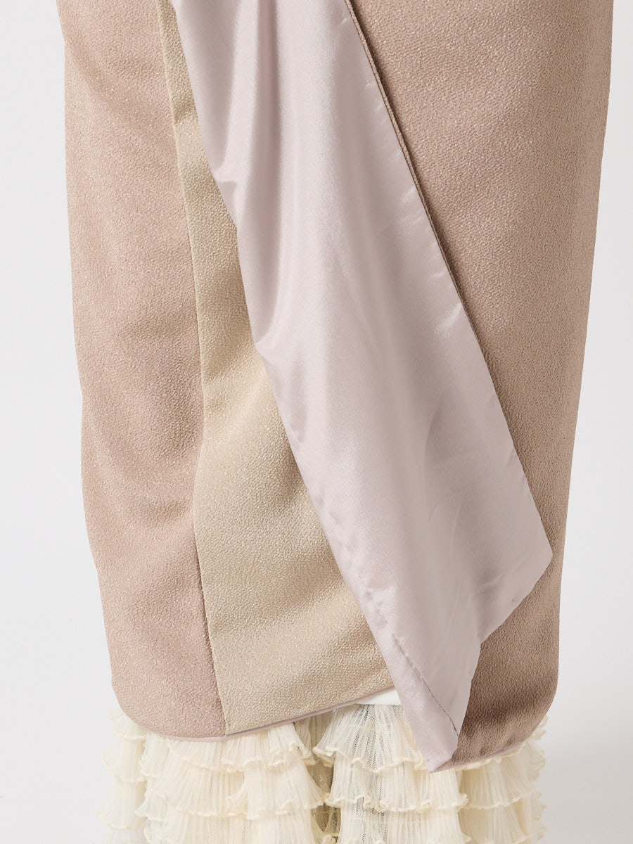 同系の三色の生地を特別に仕立てたプレタならではの一枚。