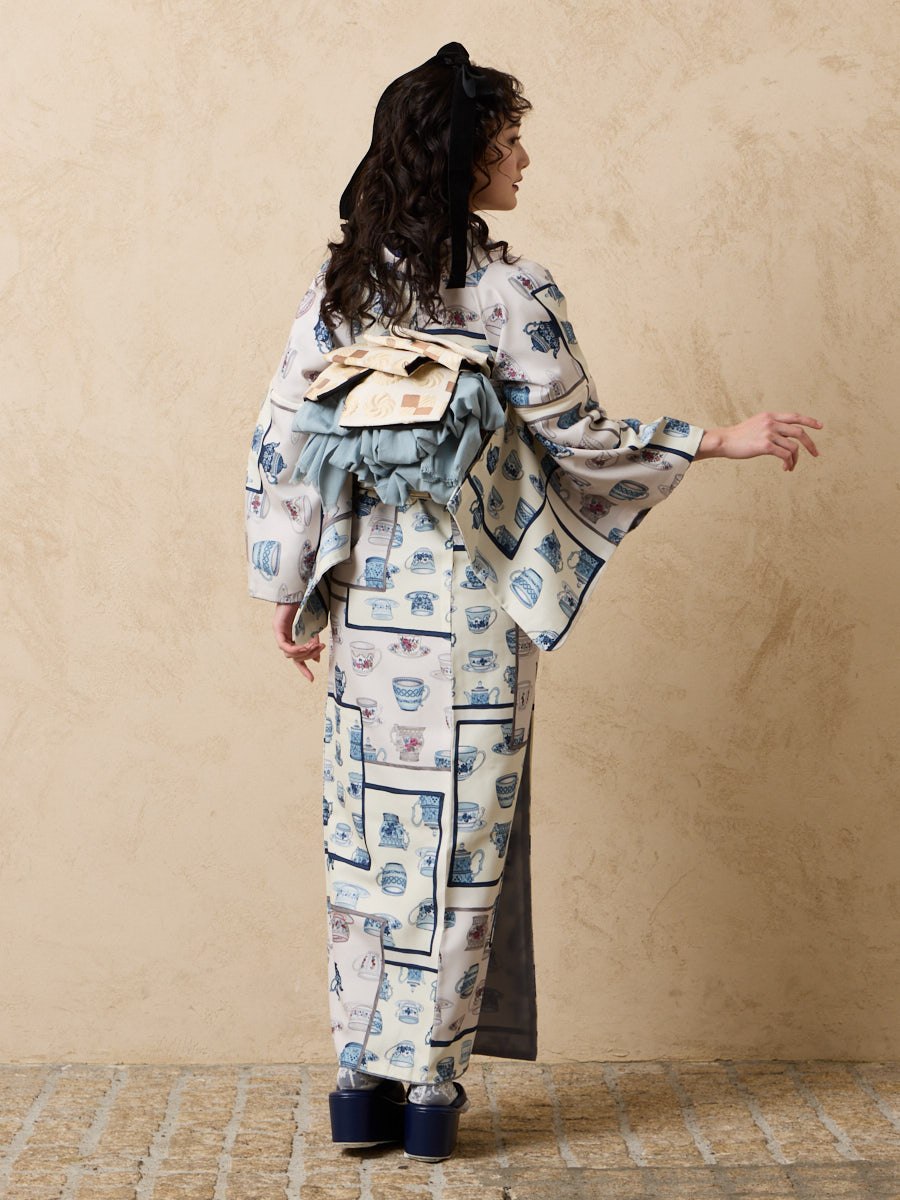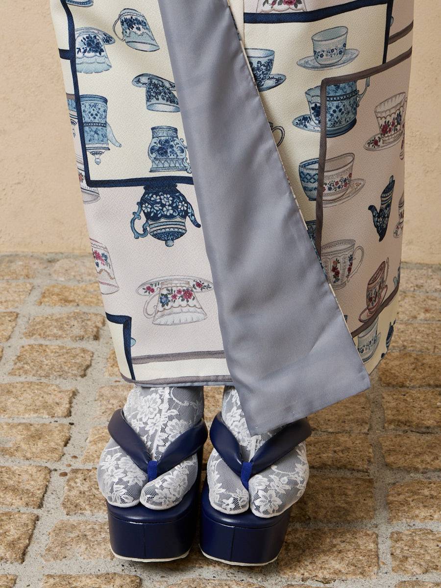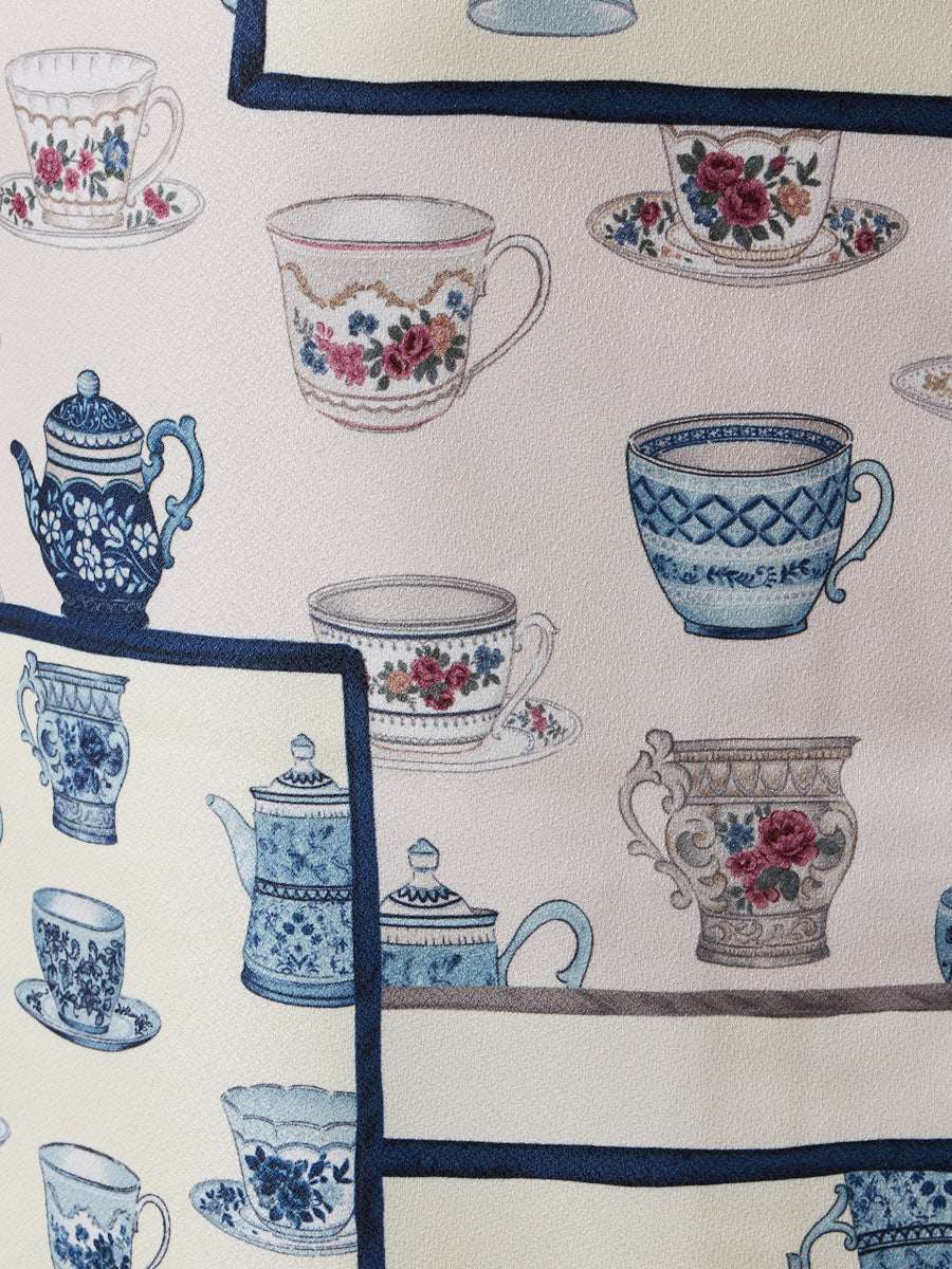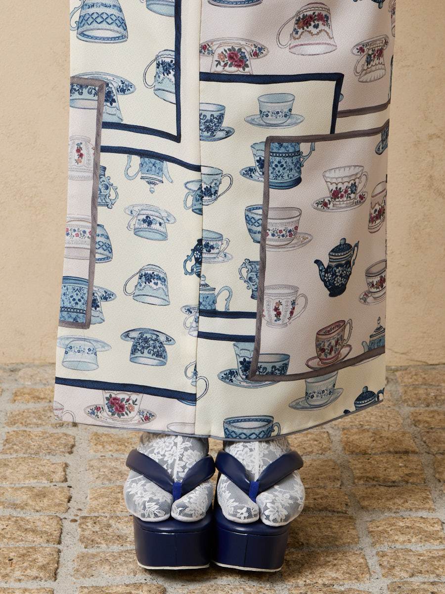 ティーカップ柄は、異国の物語を紡ぐように静かに並びます。