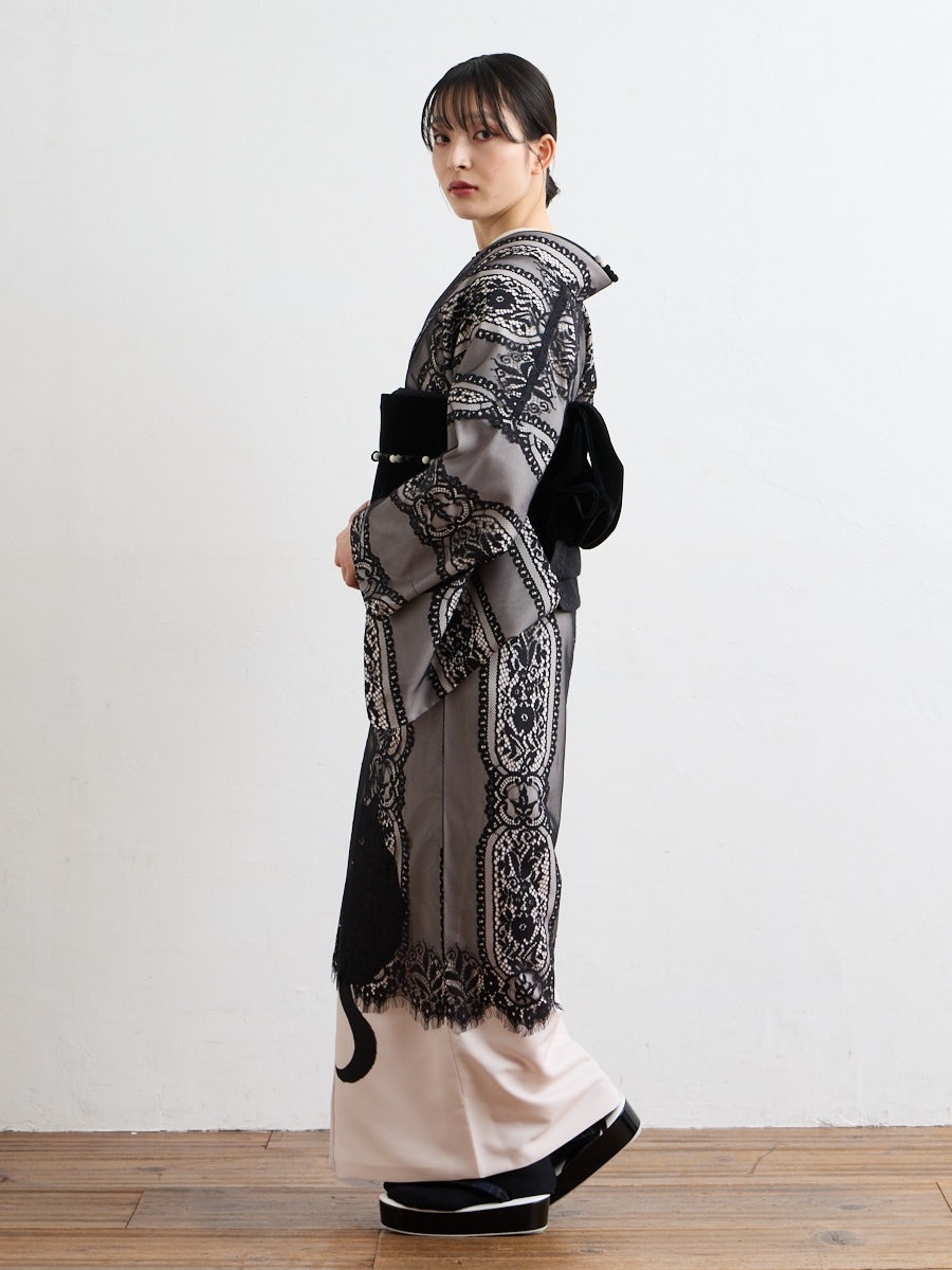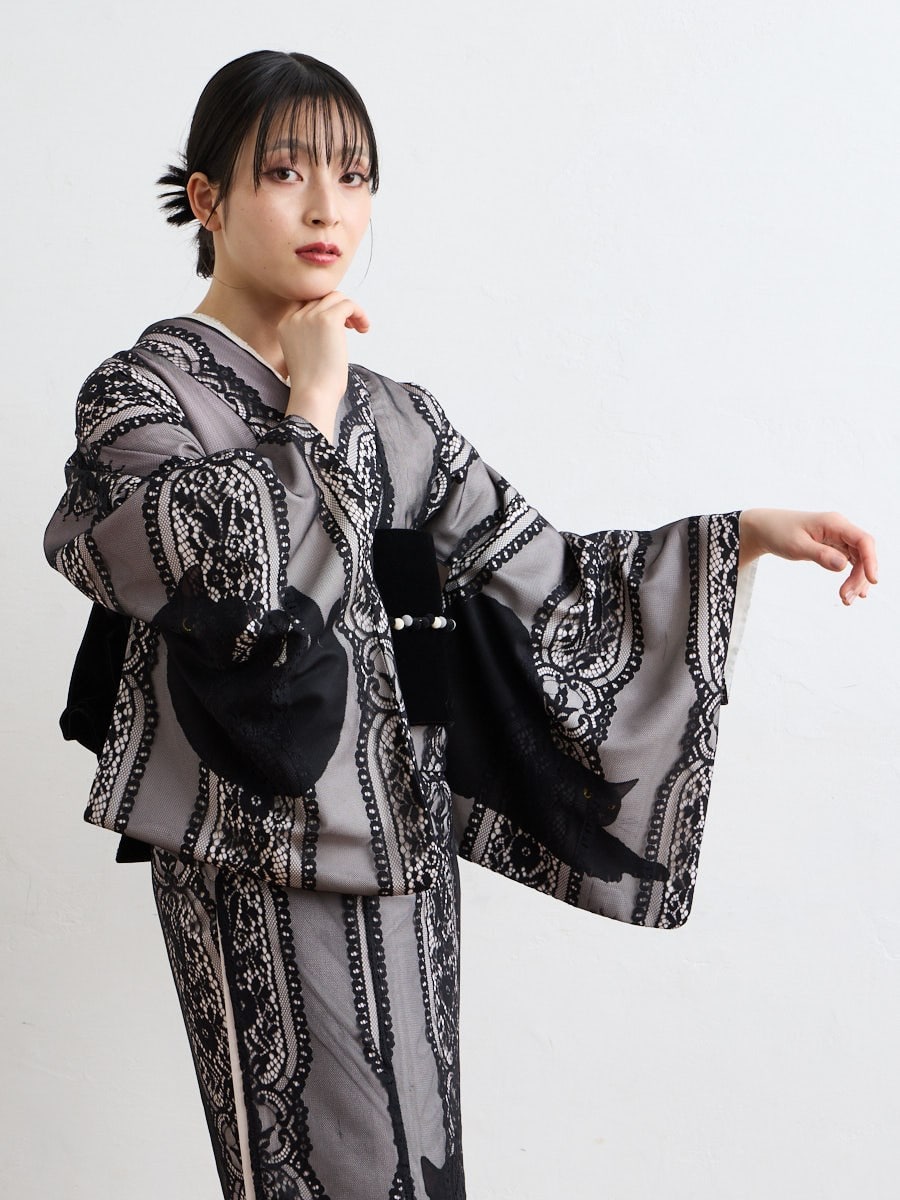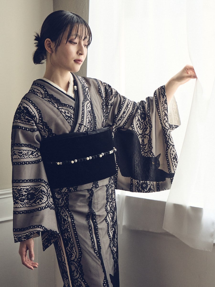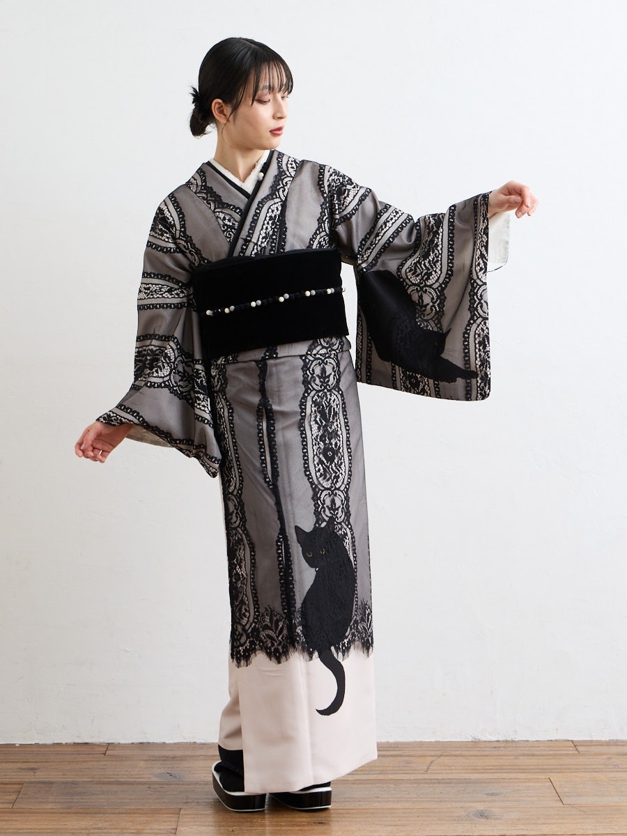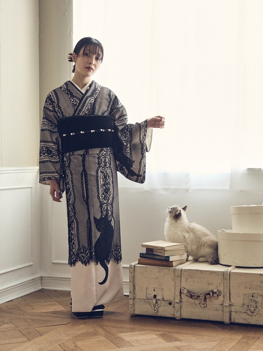 【二重仕立て着物「まどろみ猫」】