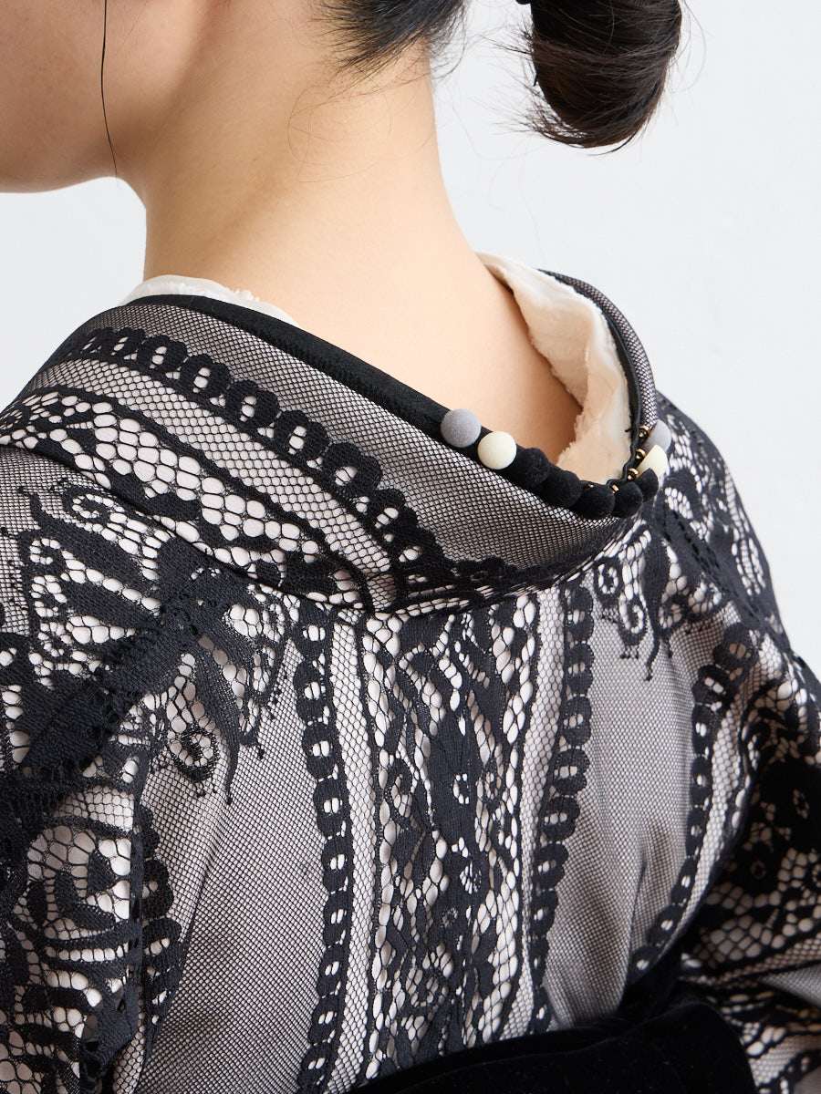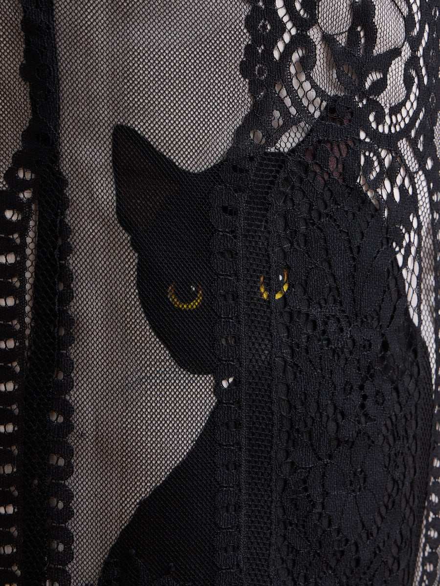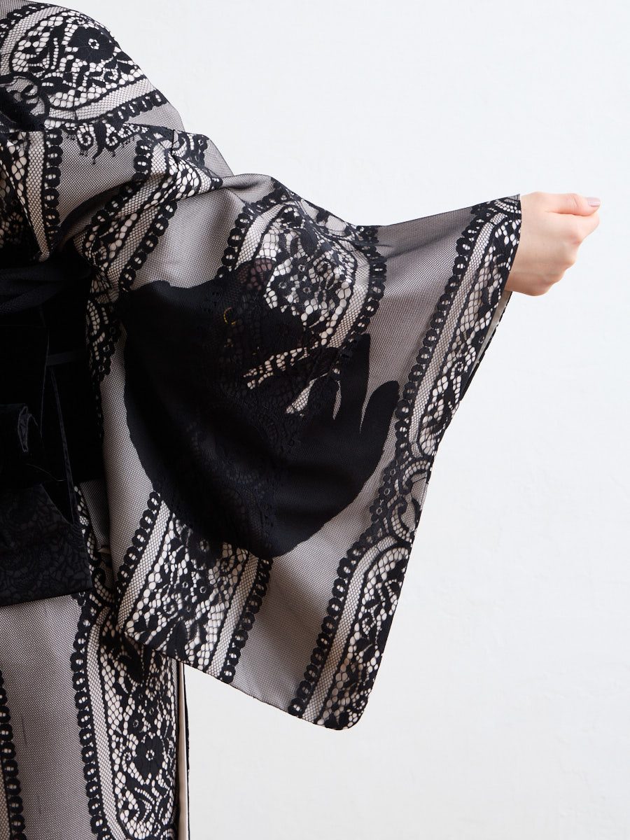 レース越しの光の透け感と黒猫のしなやかな存在感が重なり、見るたびに心がほどけていくような佇まい。