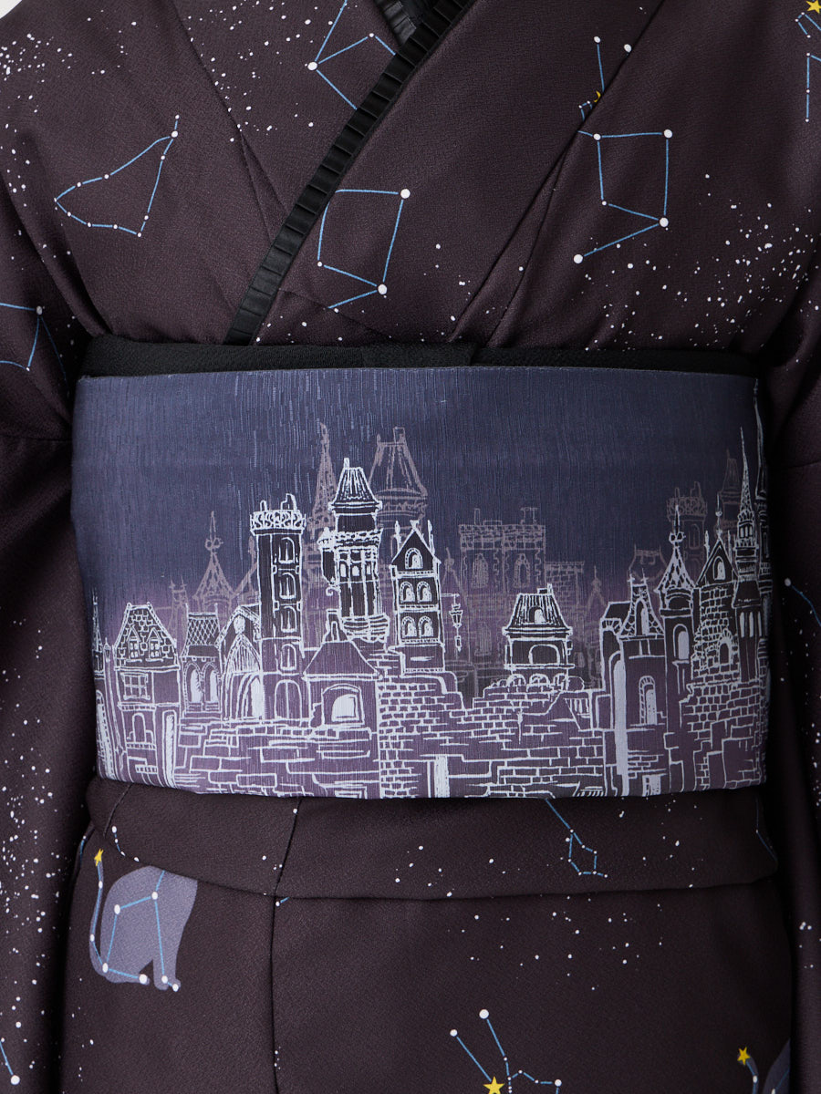 お腹には完成間近な世界を、お太鼓には月が照らす理想郷を表現しました。