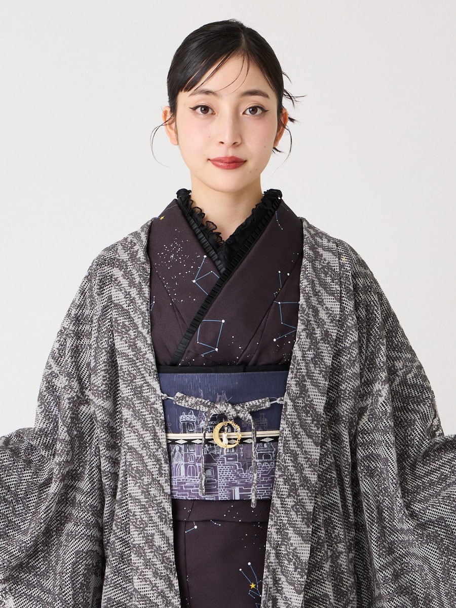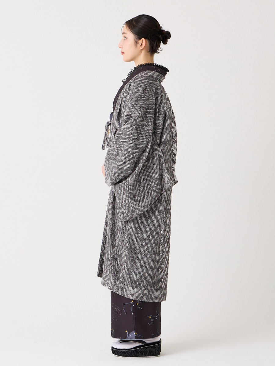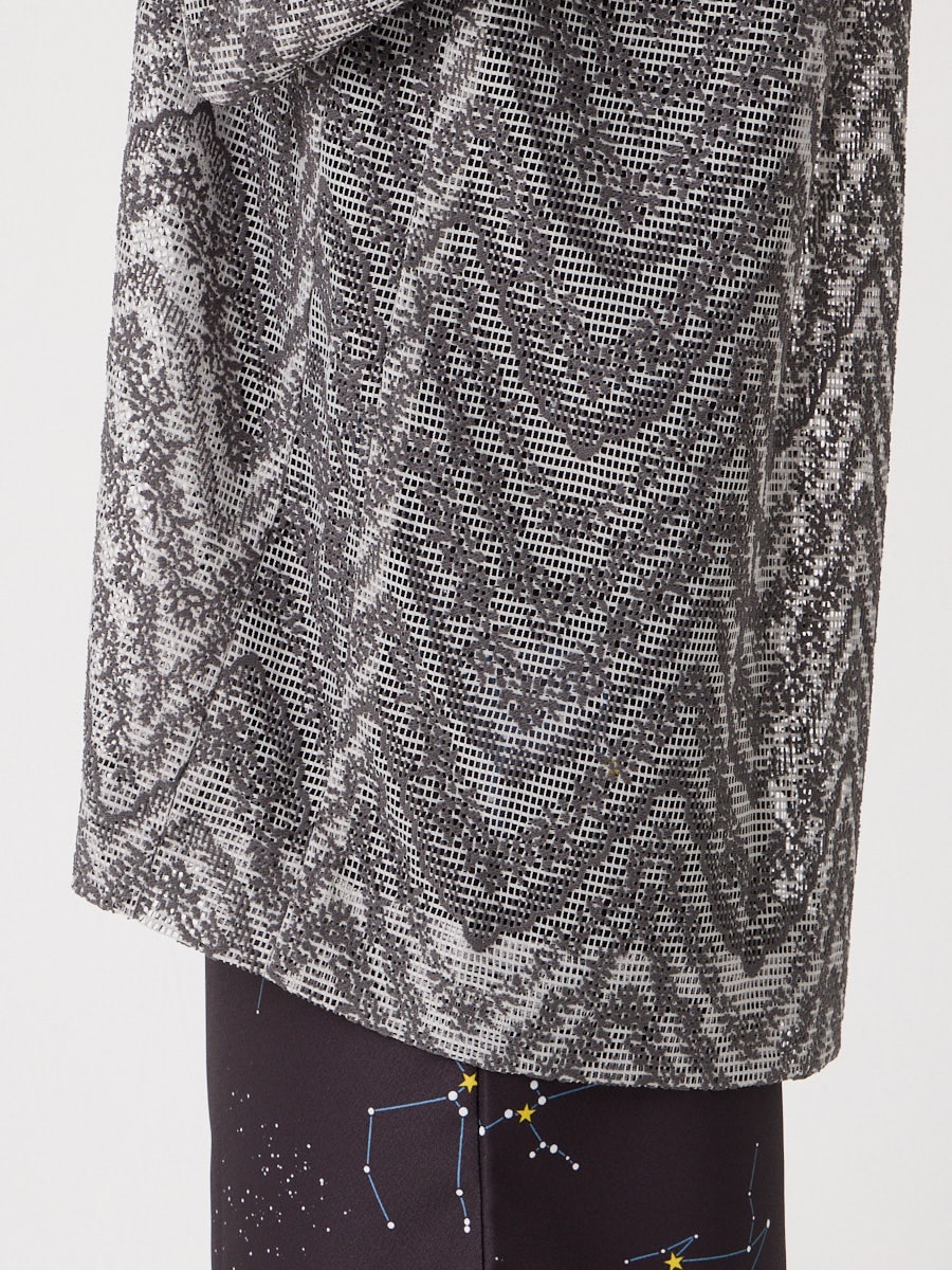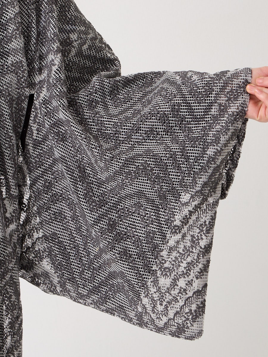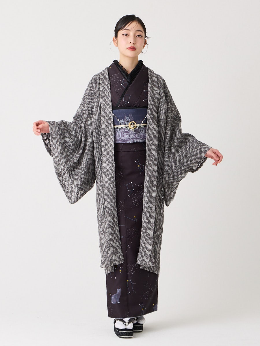 レギュラーとカチオンの染め分けで表情を豊かにした上質なボリュームレースを羽織に仕上げました。
