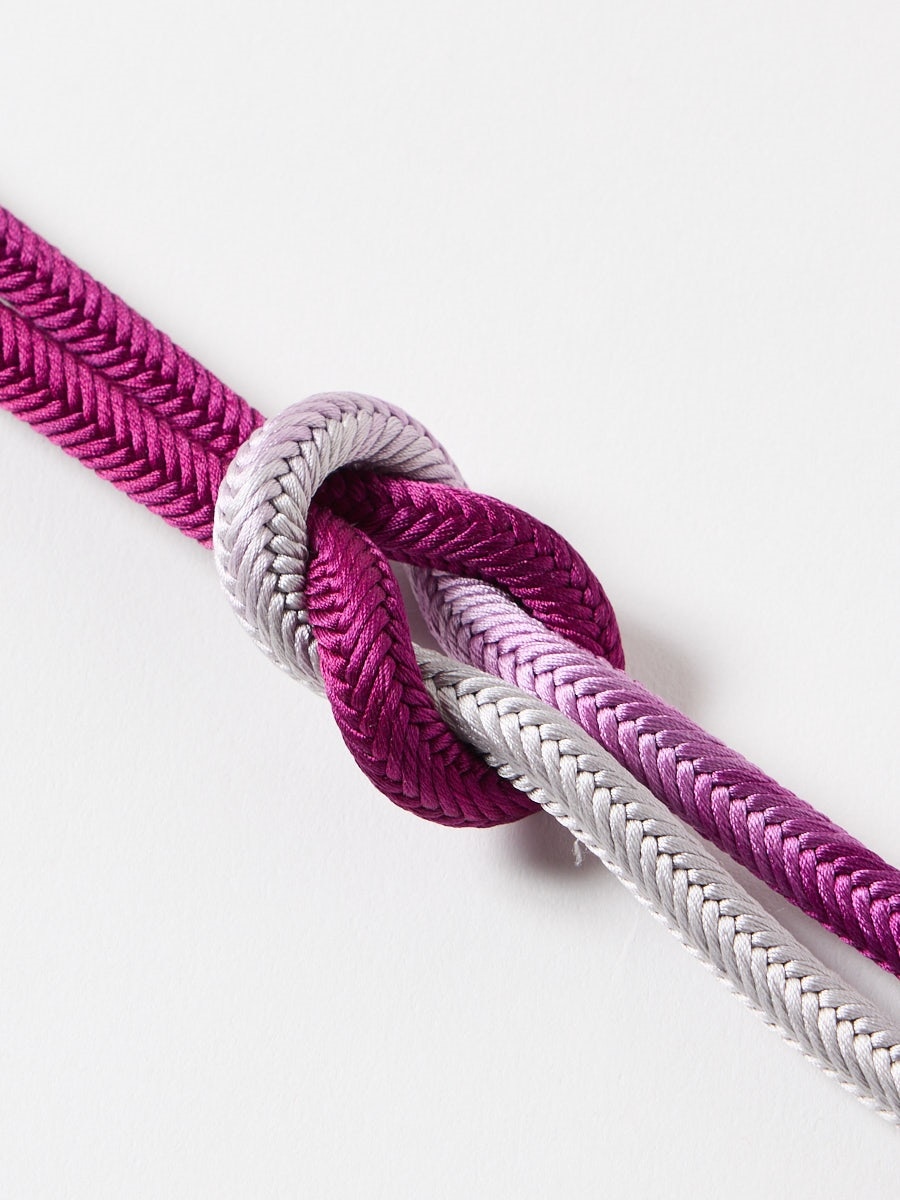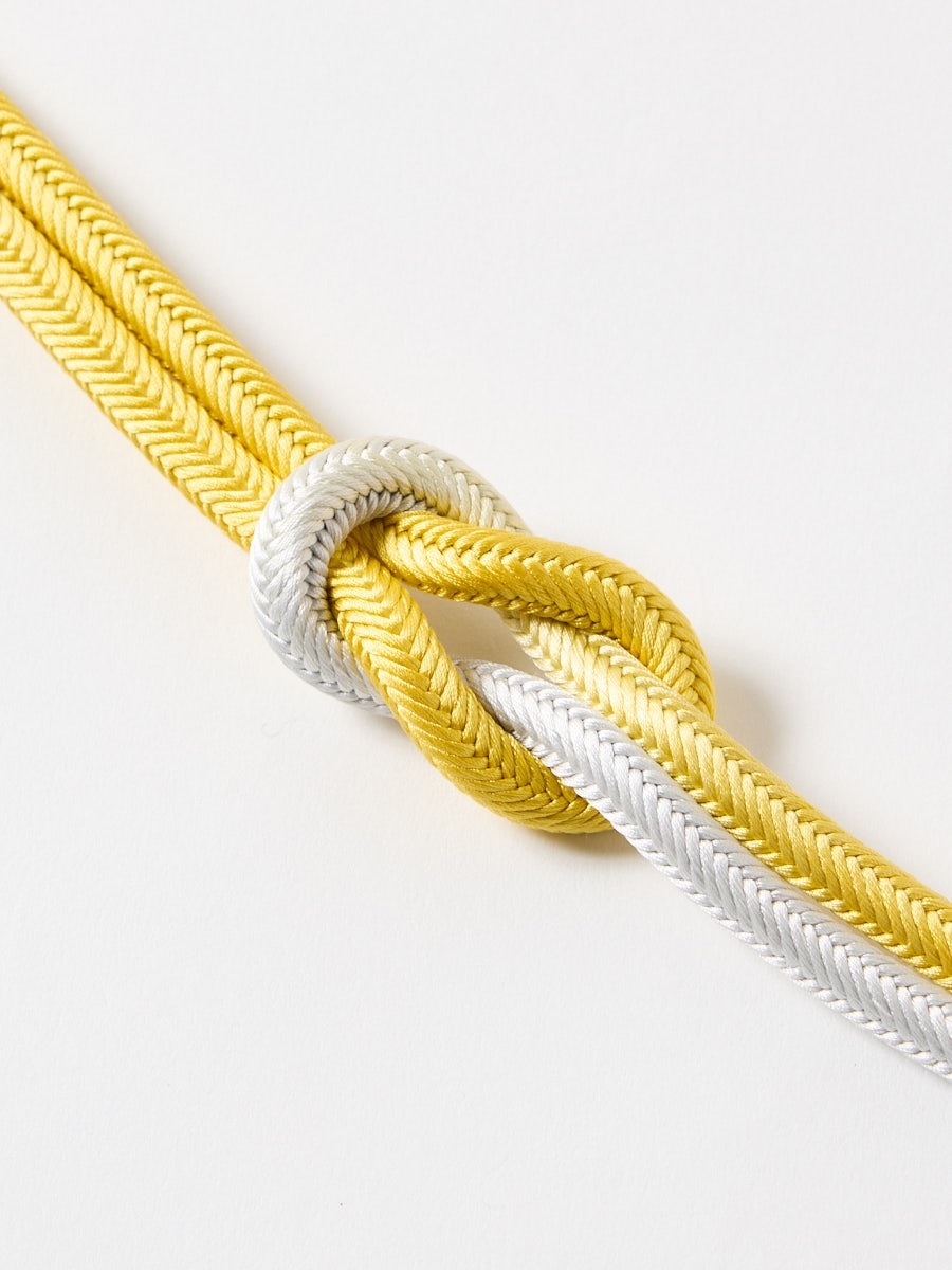 数本の糸をねじりながら組んでおり、色が交互に連なるデザインになっています。
