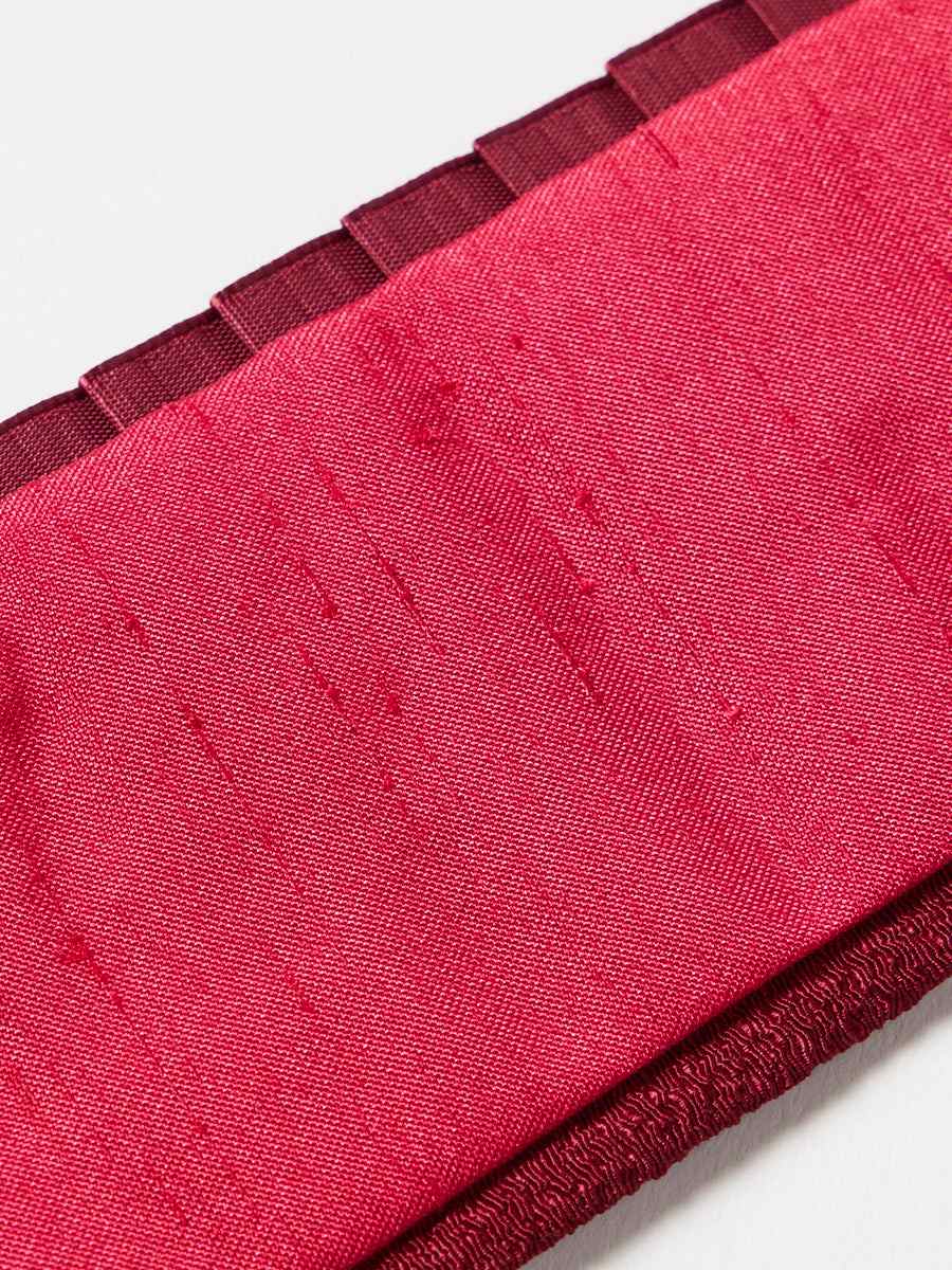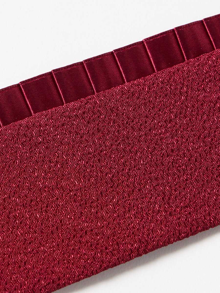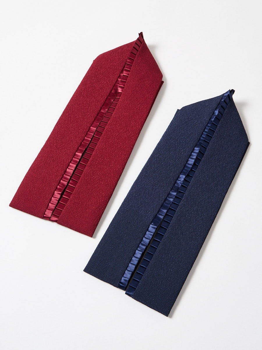 着物を重ねて着ているように見せるため、衿元に入れる重ね衿。光沢感のあるプリーツリボンを施し、あえてワントーンに仕上げました。シャンタン素材の光沢感が活きる裏面も使用可能な2wayアイテム。胸元に重厚感が出、着物姿を格調高く華やかに見せてくれるのでフォーマルシーン(振袖・訪問着etc)には欠かせません。同色で合わせて上品に、差し色にしてアクセントにお使いください。
