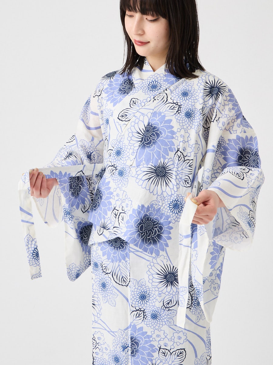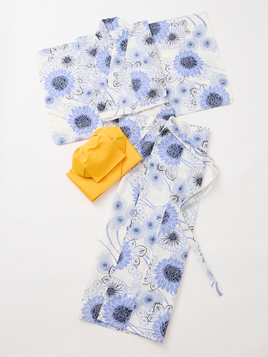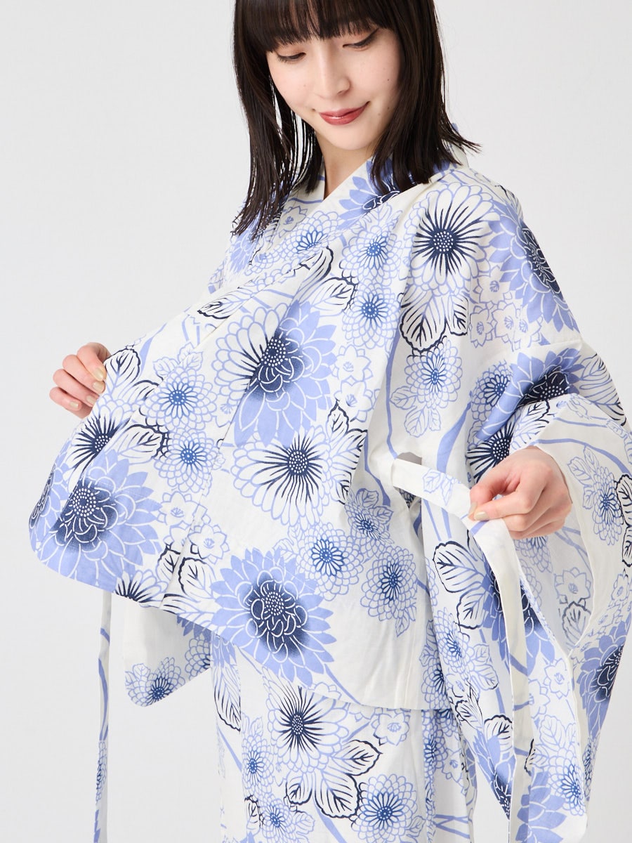 【WEB限定】浴衣2点セット(二部式浴衣 「 流水菊」+ 作り帯「花七宝」)