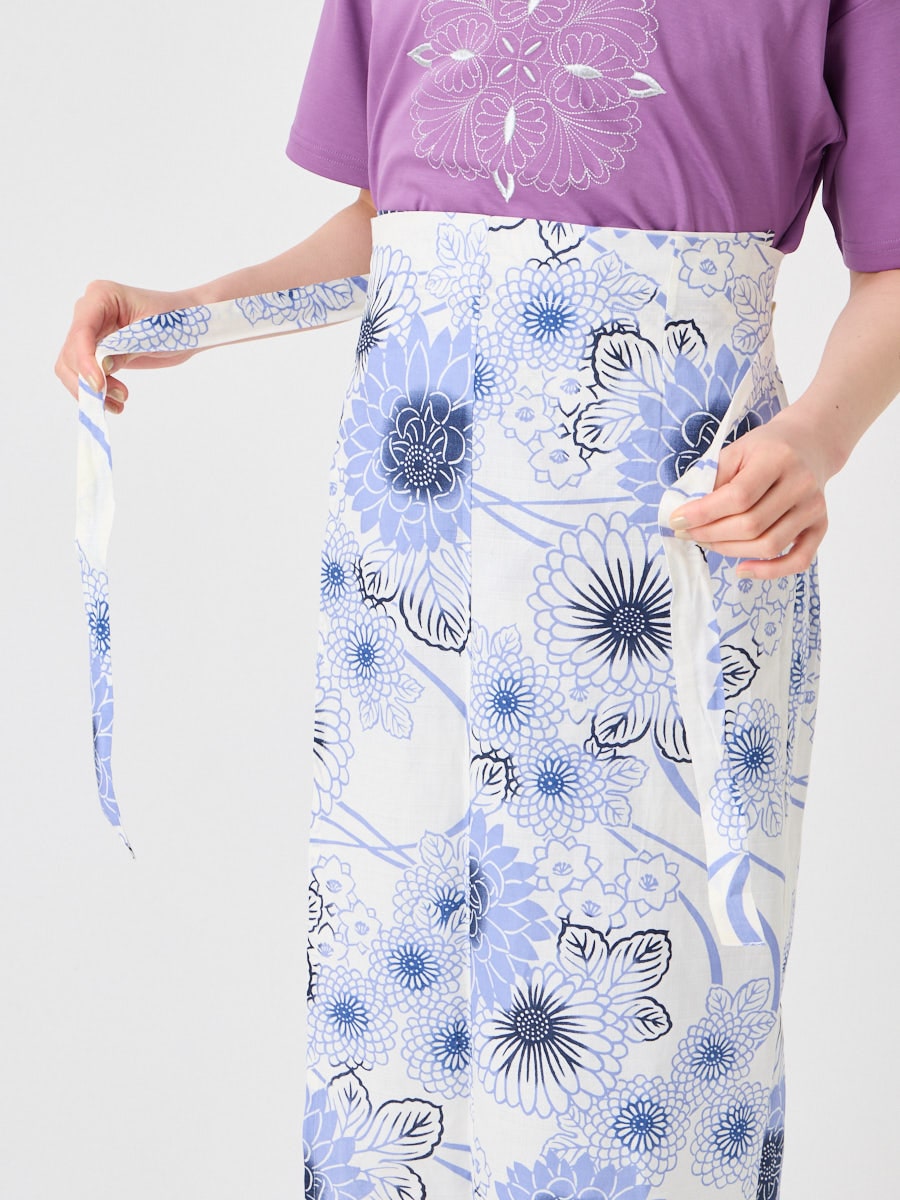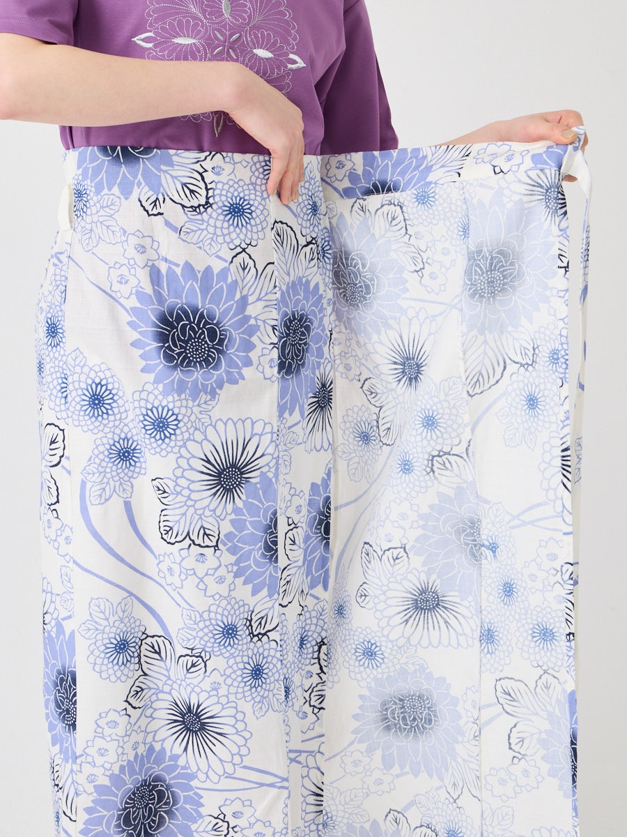 浴衣が上着とスカートに分かれているので着付けが初めての方、苦手な方でも一人で手早く、きれいに着用できます。難しいおはしょりの処理や、衣紋の抜き加減も簡単です。