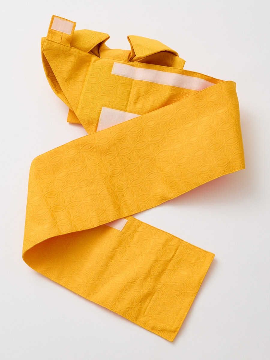 帯はくるっと体に巻きつけて、マジックテープで止めるだけなので、手早く簡単に帯を結ぶことができます。巻く部分とリボン部分は一体型で、着崩れしにくいタイプです。作り帯に見えない、おしゃれな形の帯結びも魅力です。