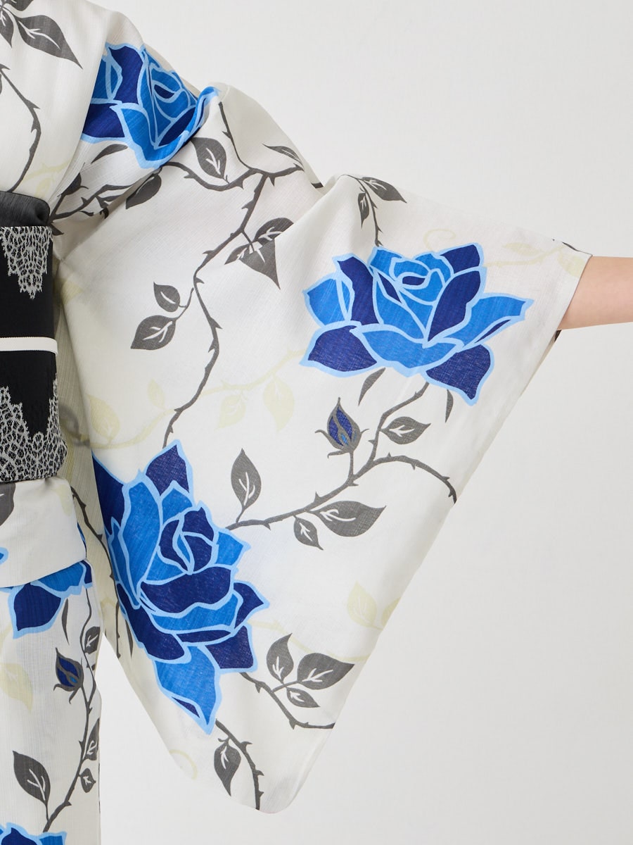 【WEB限定】浴衣3点セット(浴衣「NaturalFurifu・青薔薇」+ 半巾帯「花七宝」+着付け冊子)