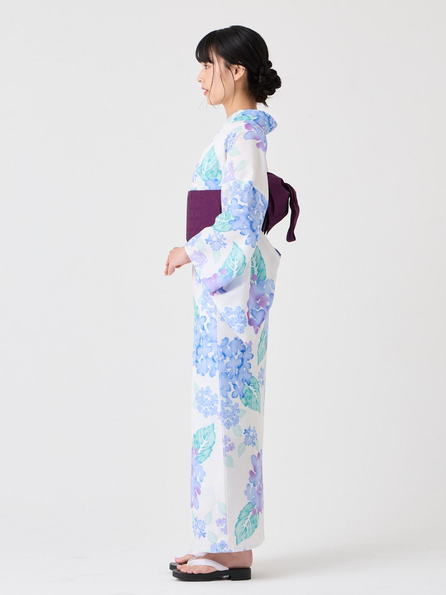 【WEB限定】浴衣3点セット(浴衣「ハナウタ・紫陽花」+ 半巾帯「花七宝」+着付け冊子)