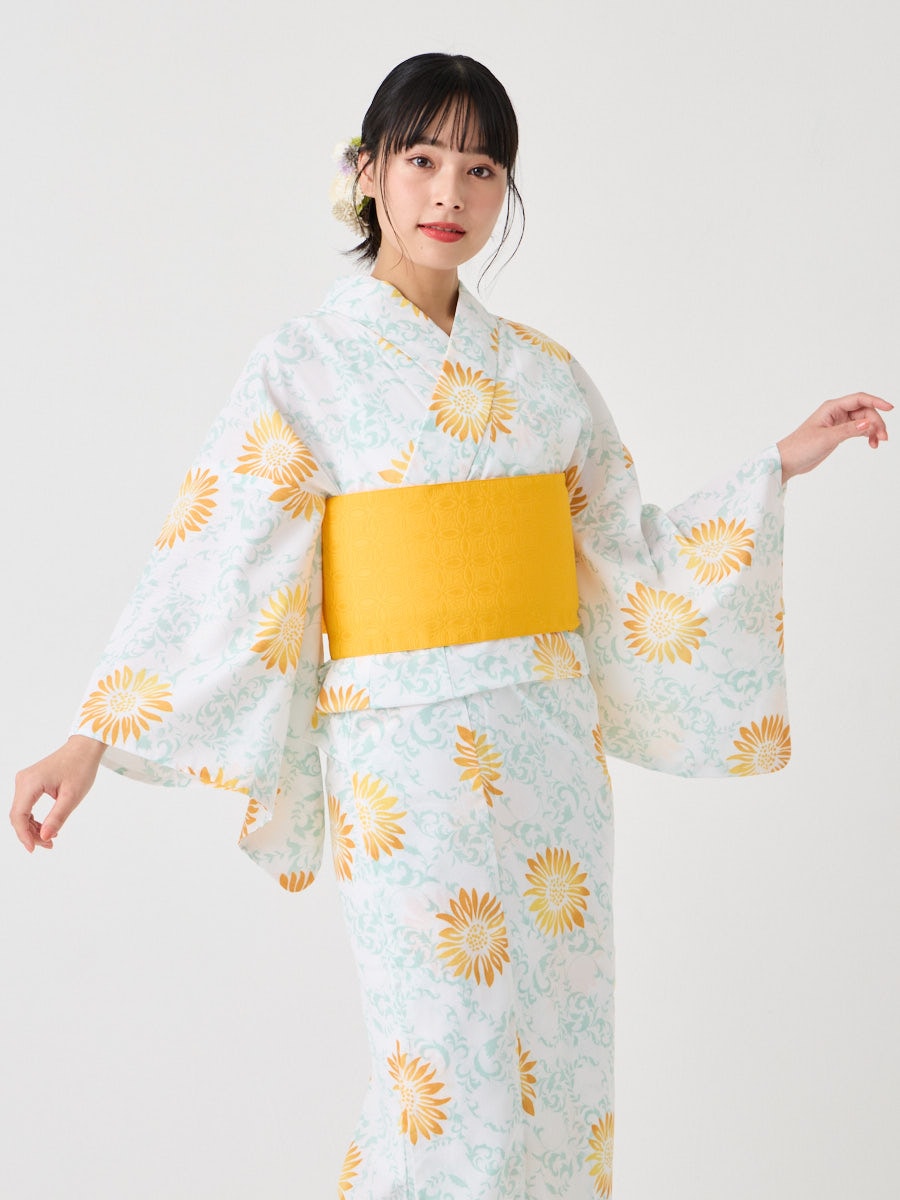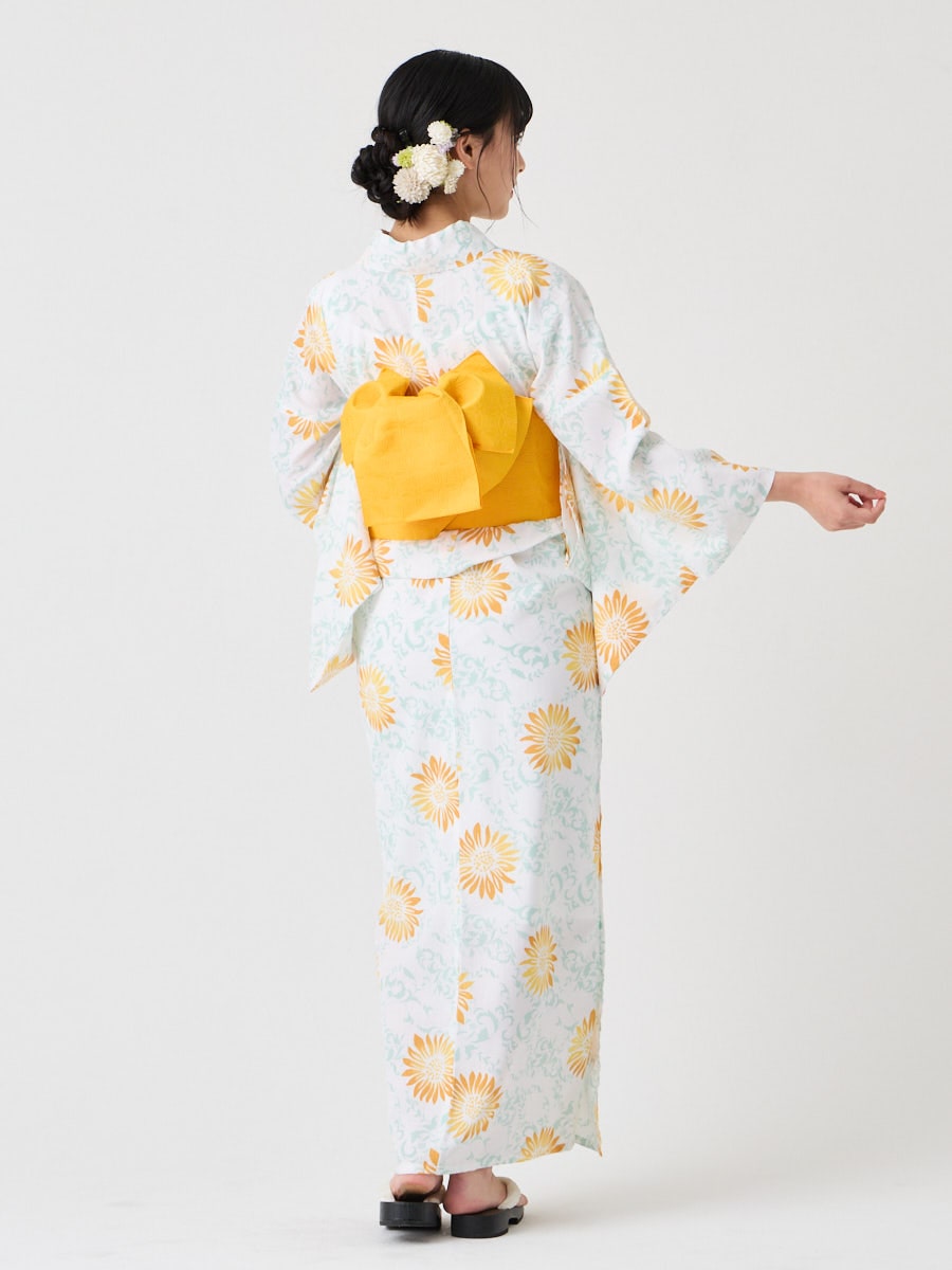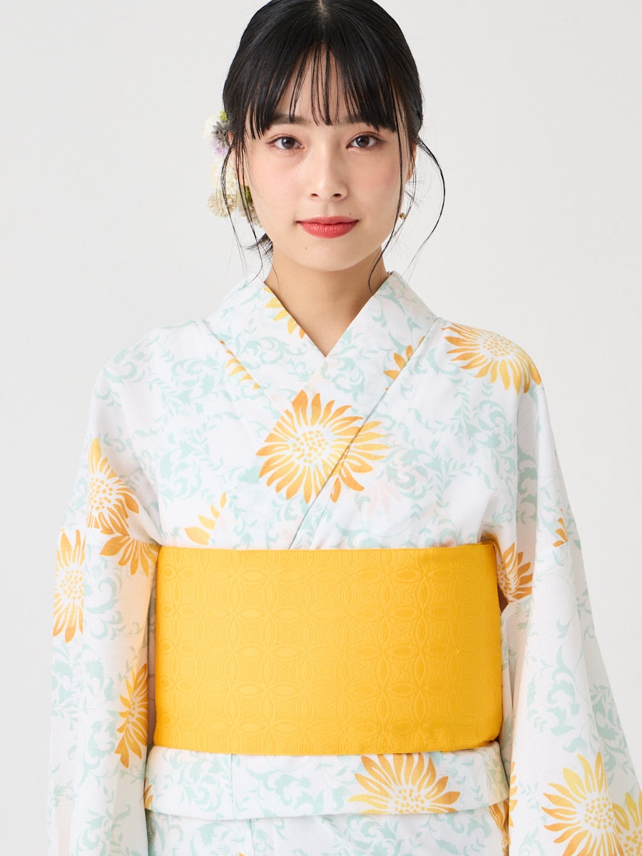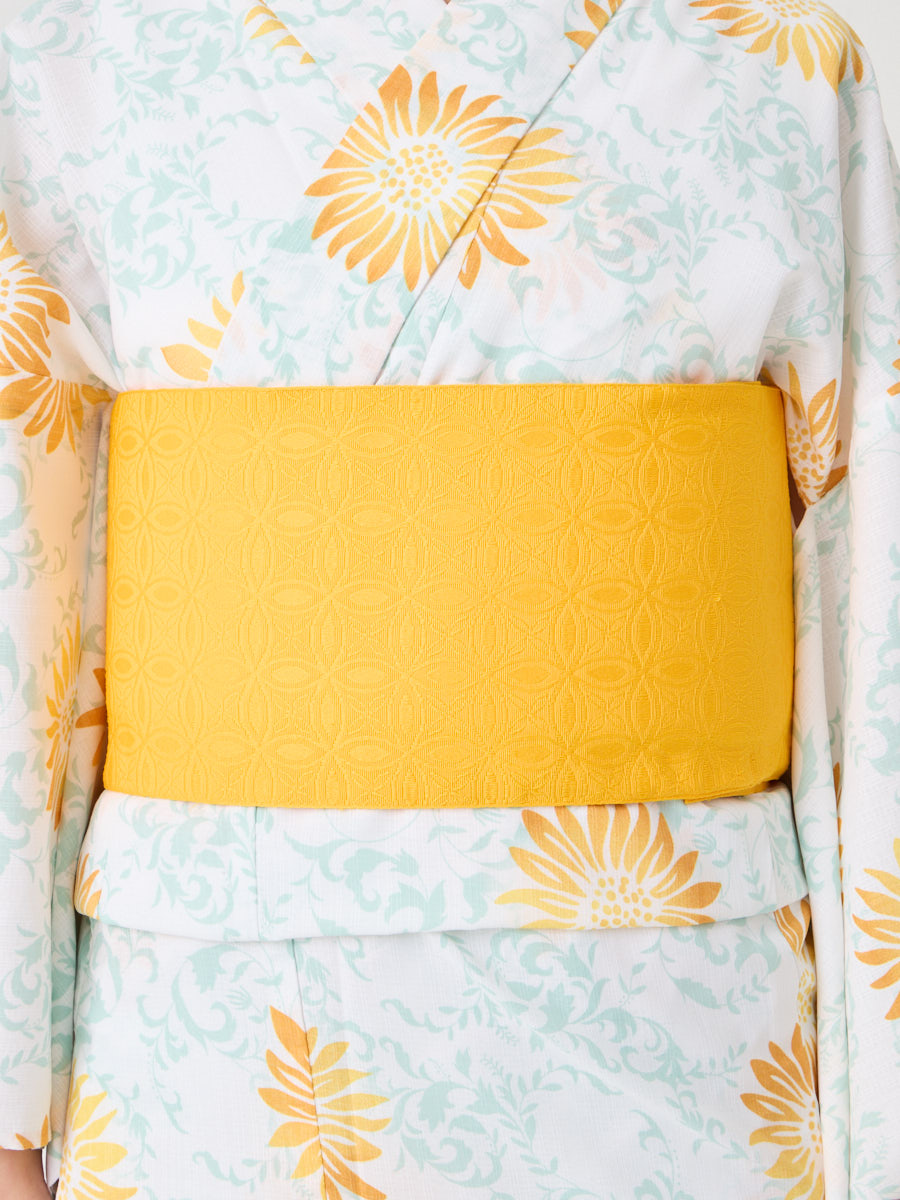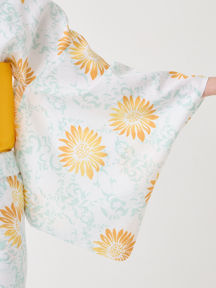 【WEB限定】浴衣3点セット(浴衣「ハナウタ・向日葵」+ 半巾帯「花七宝」+着付け冊子)