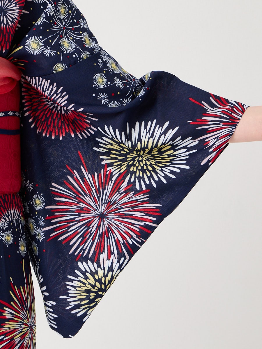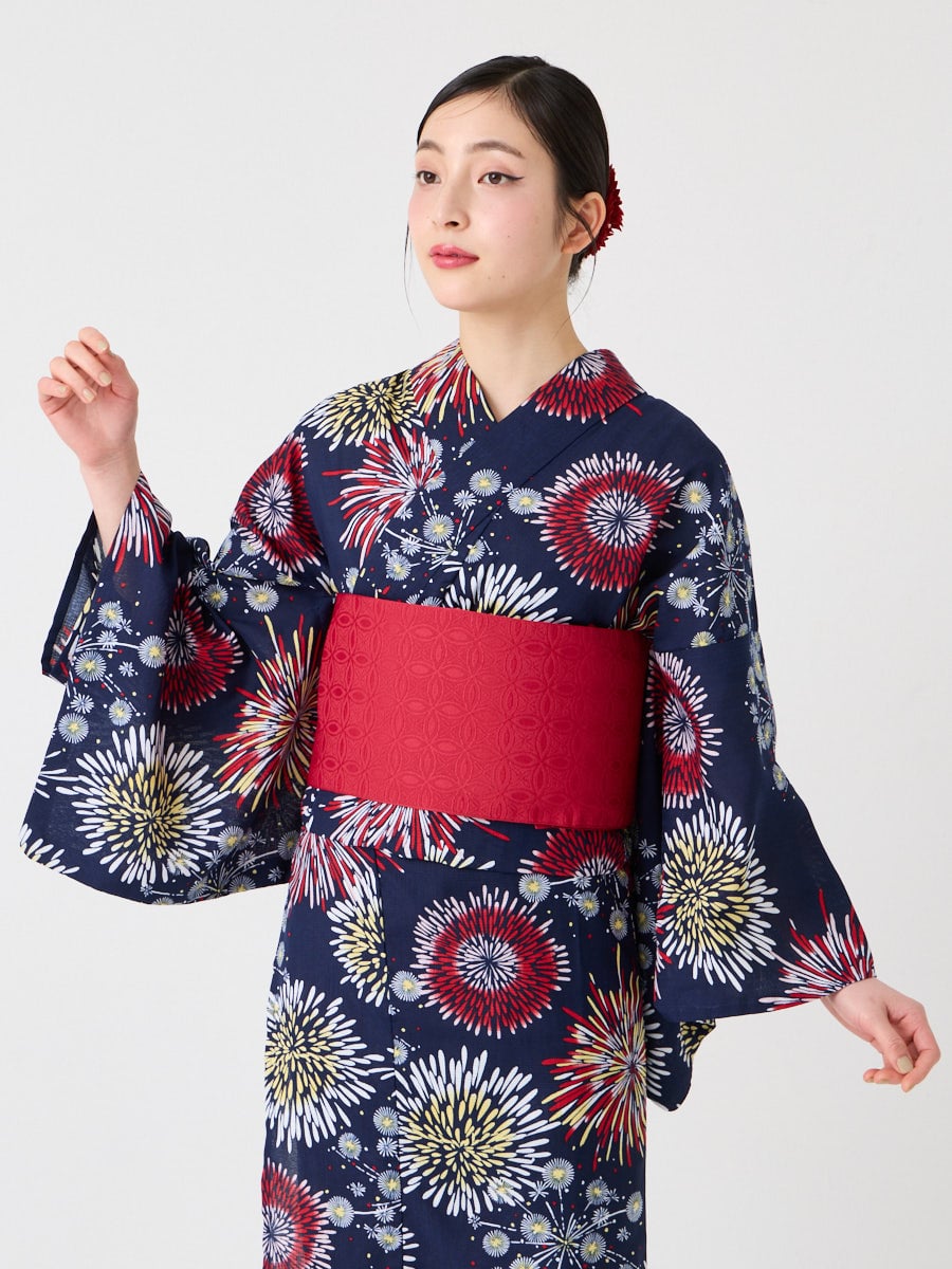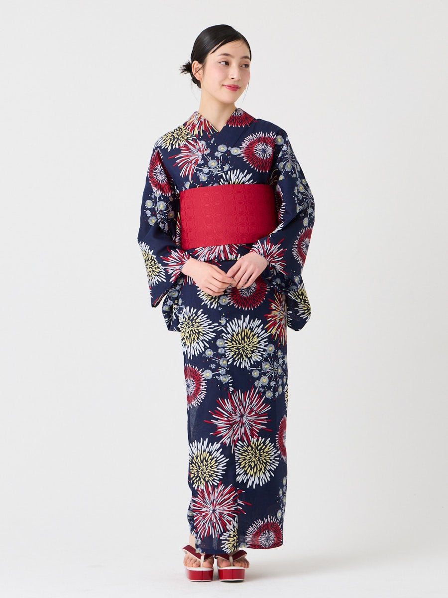 【WEB限定】浴衣3点セット(浴衣「ハナウタ・夏空花火」+ 半巾帯「花七宝」+着付け冊子)