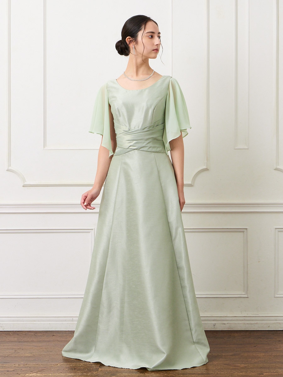 バックサテンシャンタンのマットな風合いが落ち着いた雰囲気のロングドレス