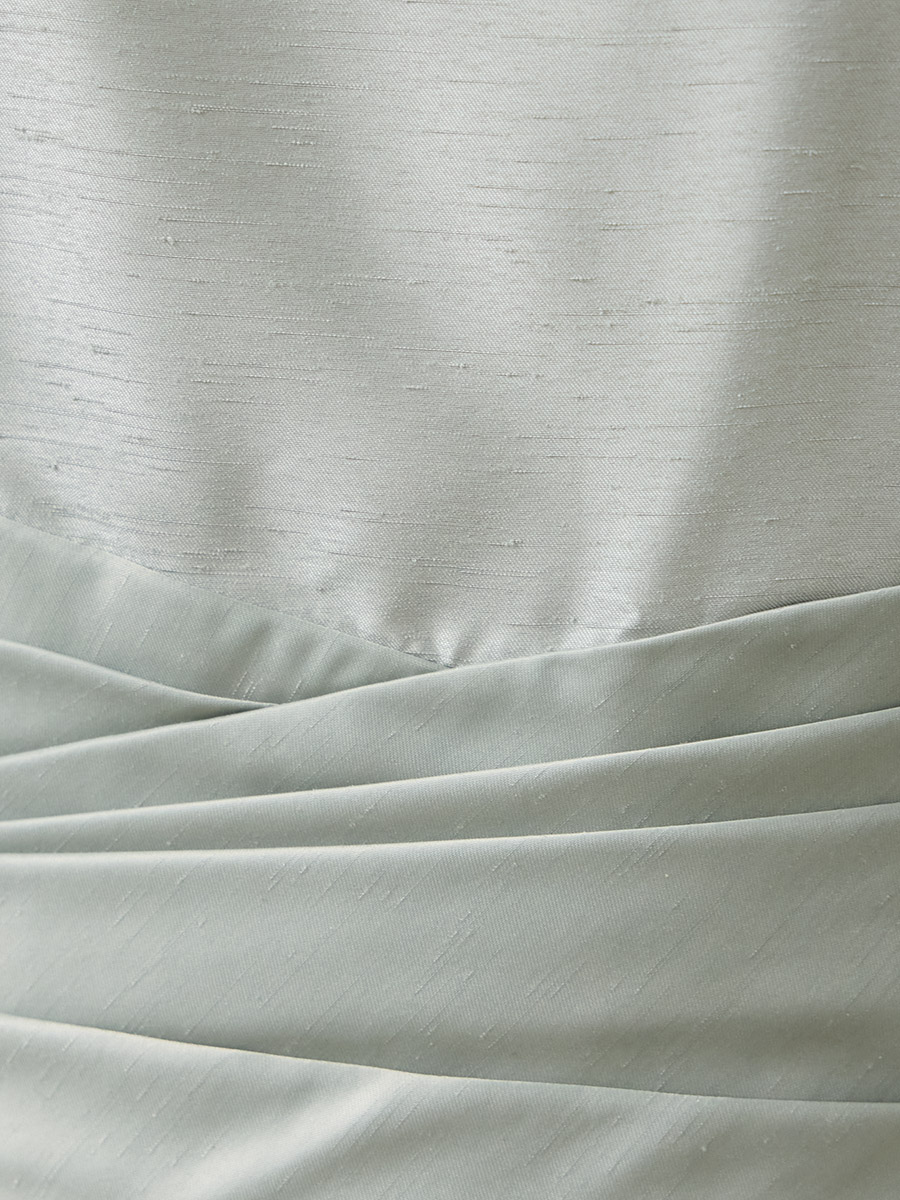 身頃とスカートにはシャンタン面を使い、ウエスト切り替えにはサテン面を使用しています。