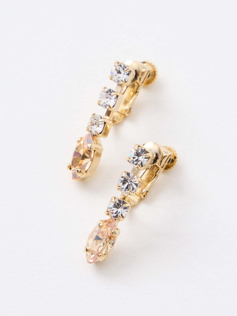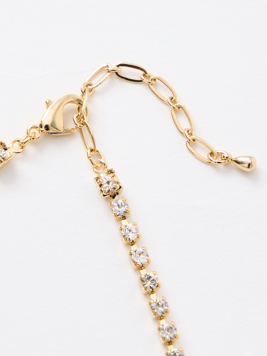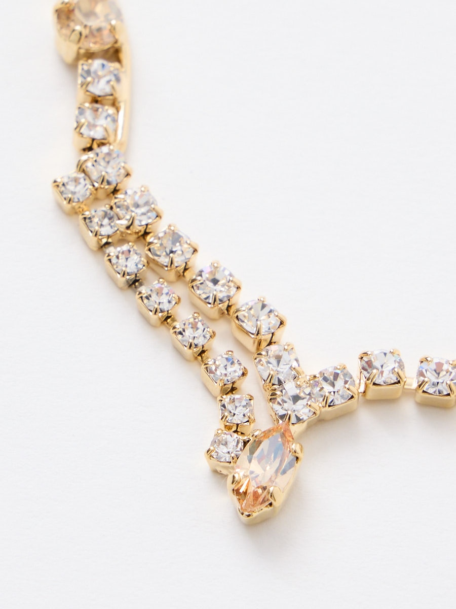 ラウンドカットのクリスタルストーンが繊細に連なり、華やかな輝きを放ちます。