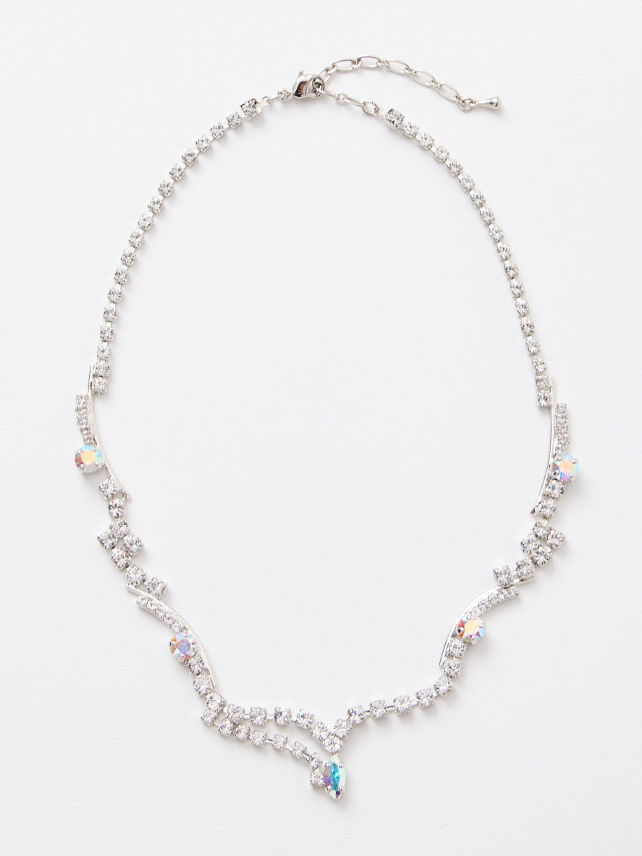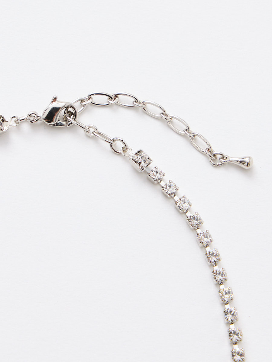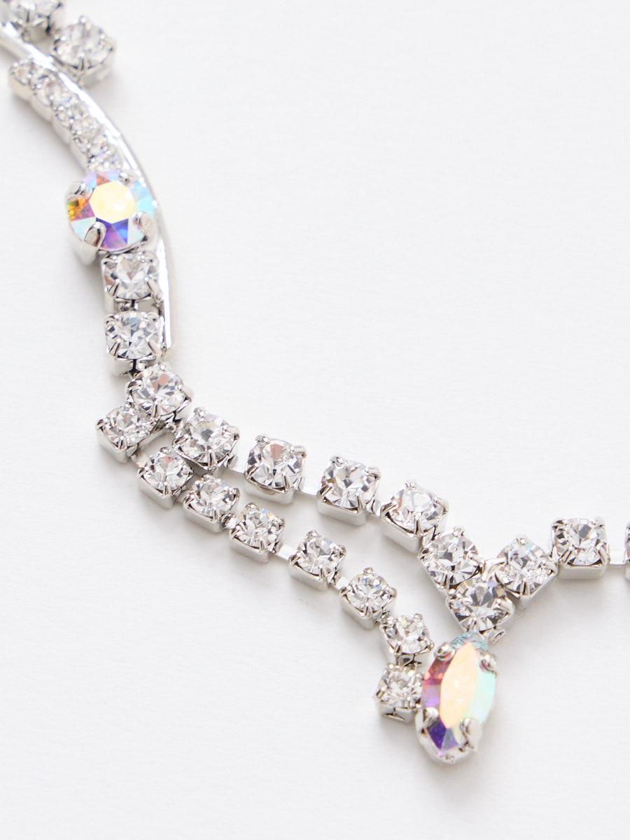ラウンドカットのクリスタルストーンが繊細に連なり、華やかな輝きを放ちます。