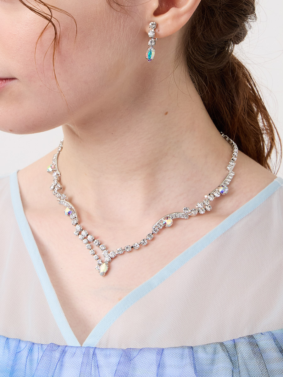 V字シルエットが首元を美しく演出するネックレスとイヤリングのセット。