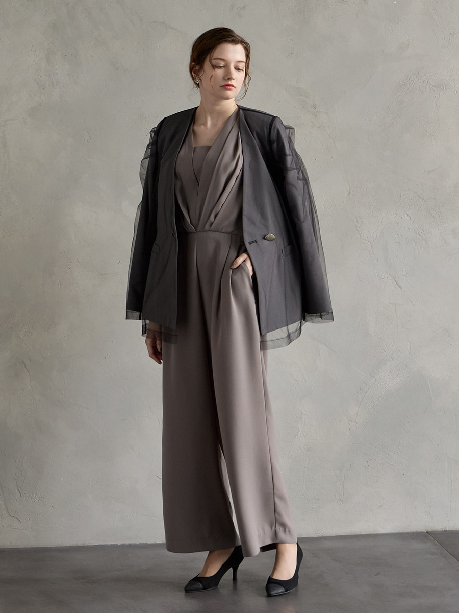 スッキリ見え抜群なオールインワンパーティードレス。