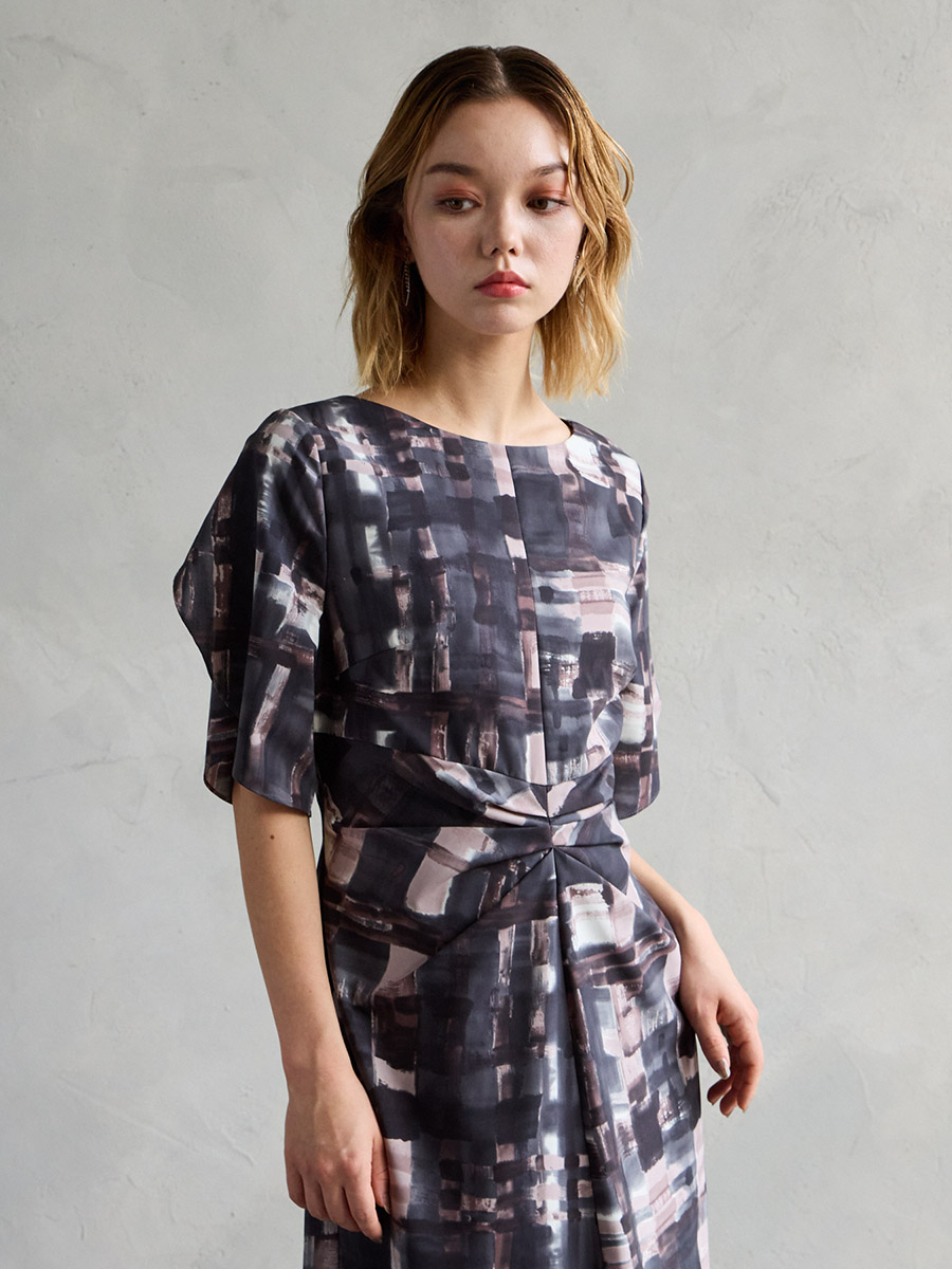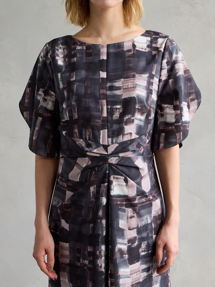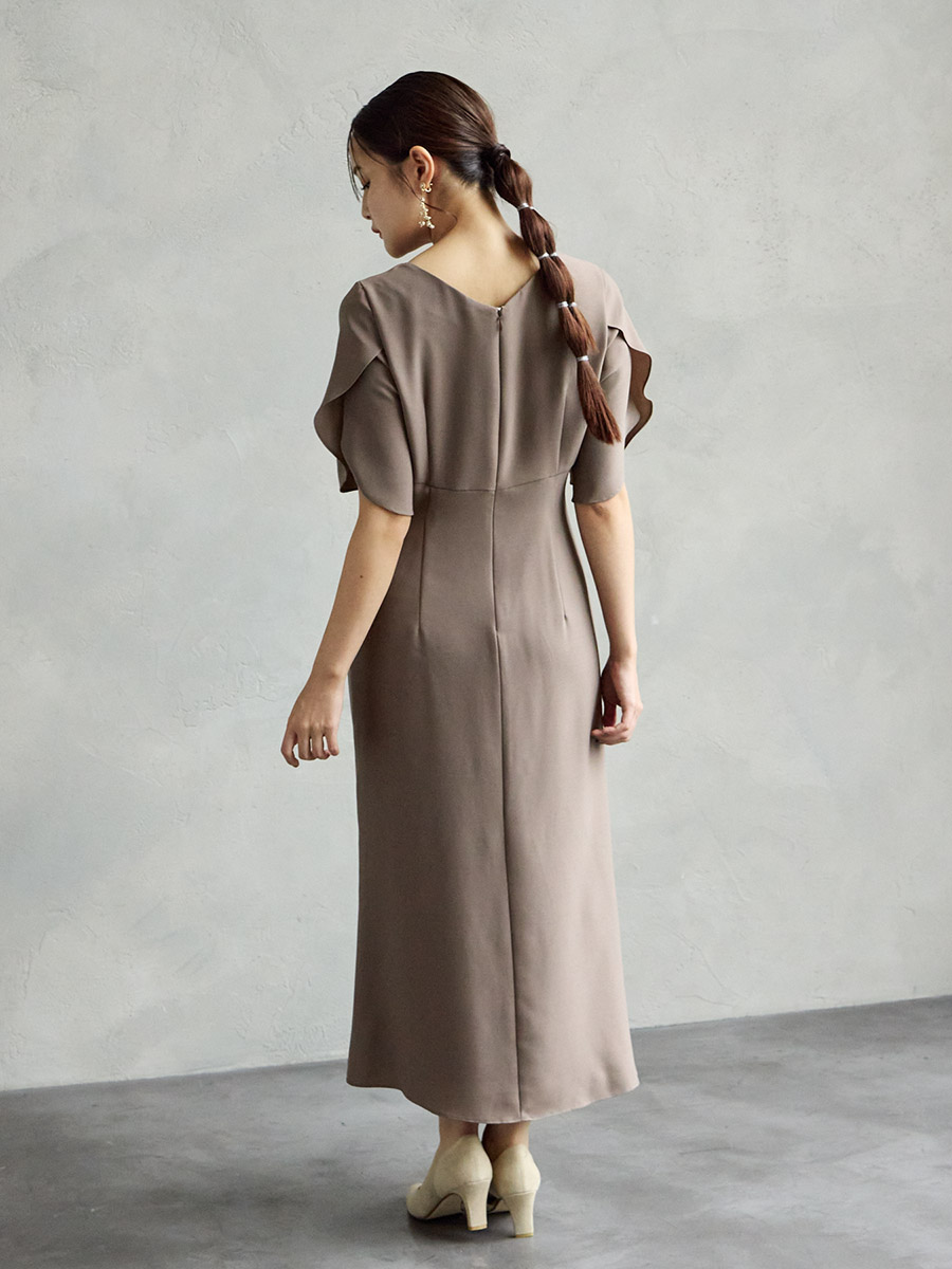 ・2枚の生地が重なる筒状のスリーブデザインは腕周りをすっきり見せてくれます