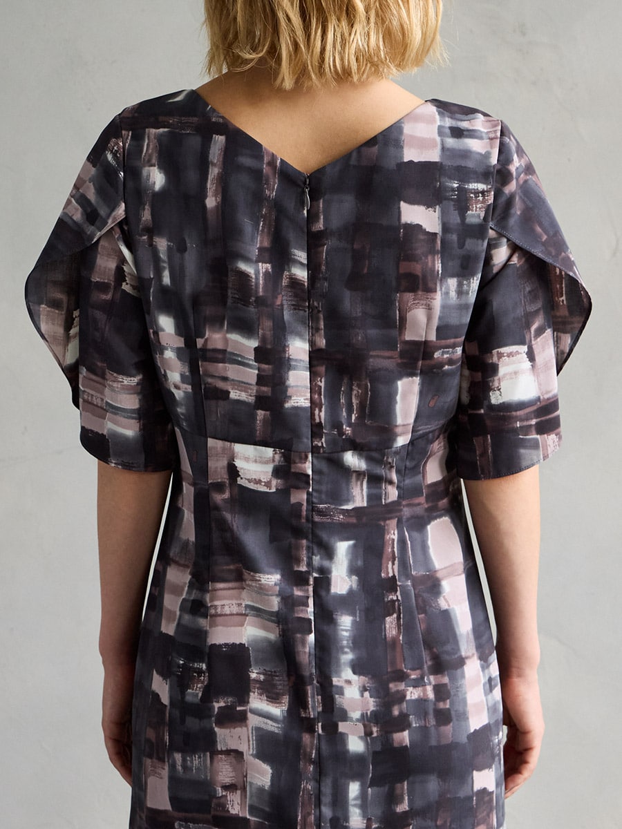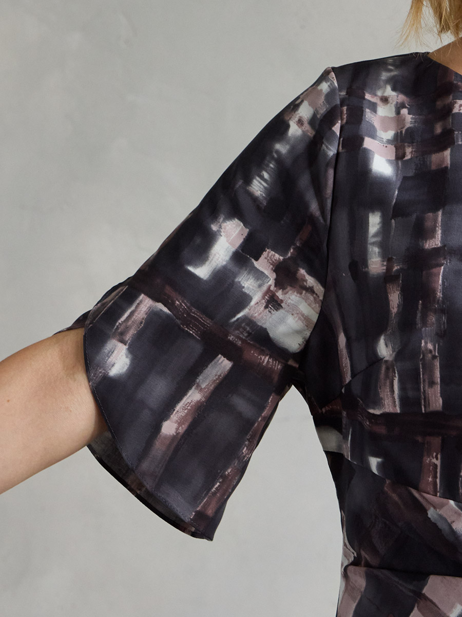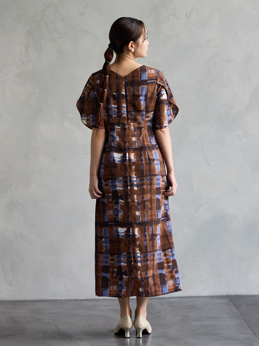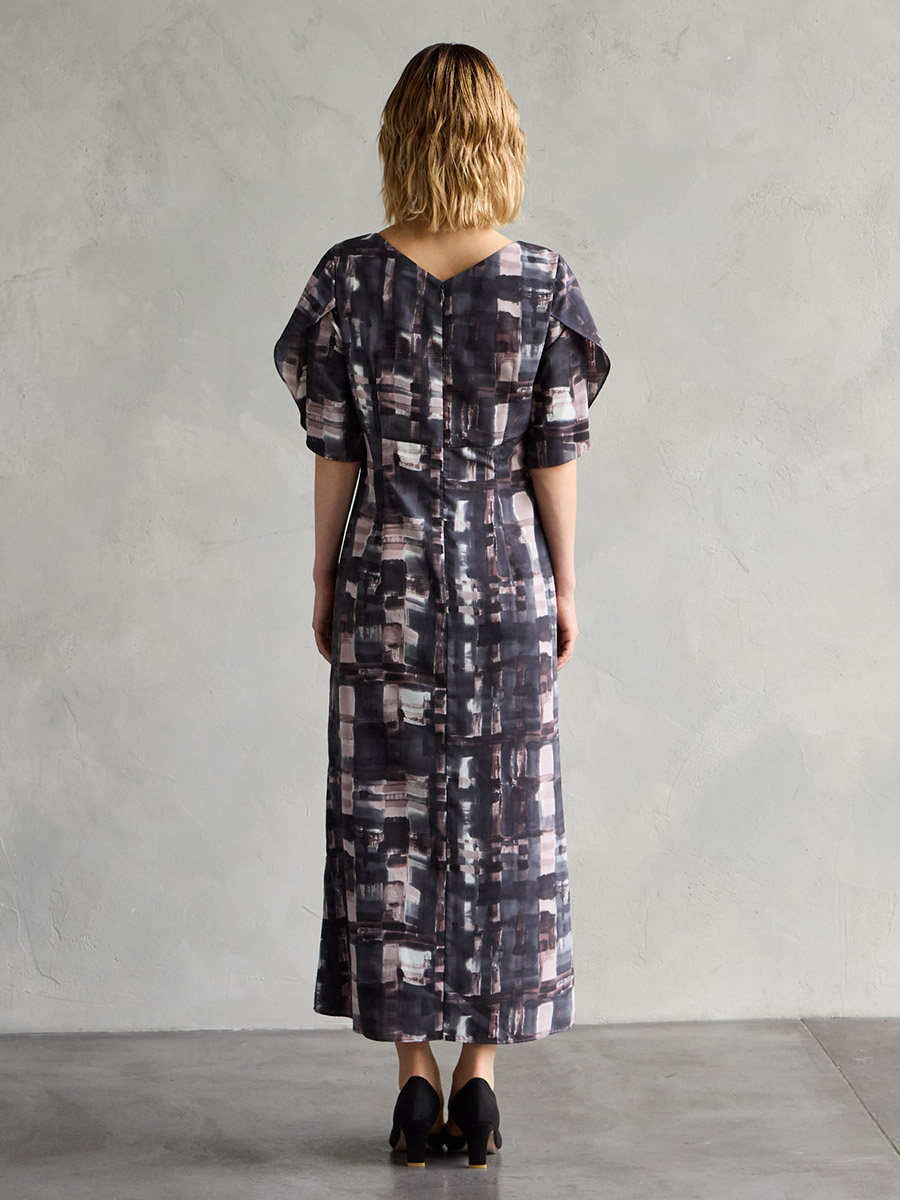 ・2枚の生地が重なる筒状のスリーブデザインは腕周りをすっきり見せてくれます