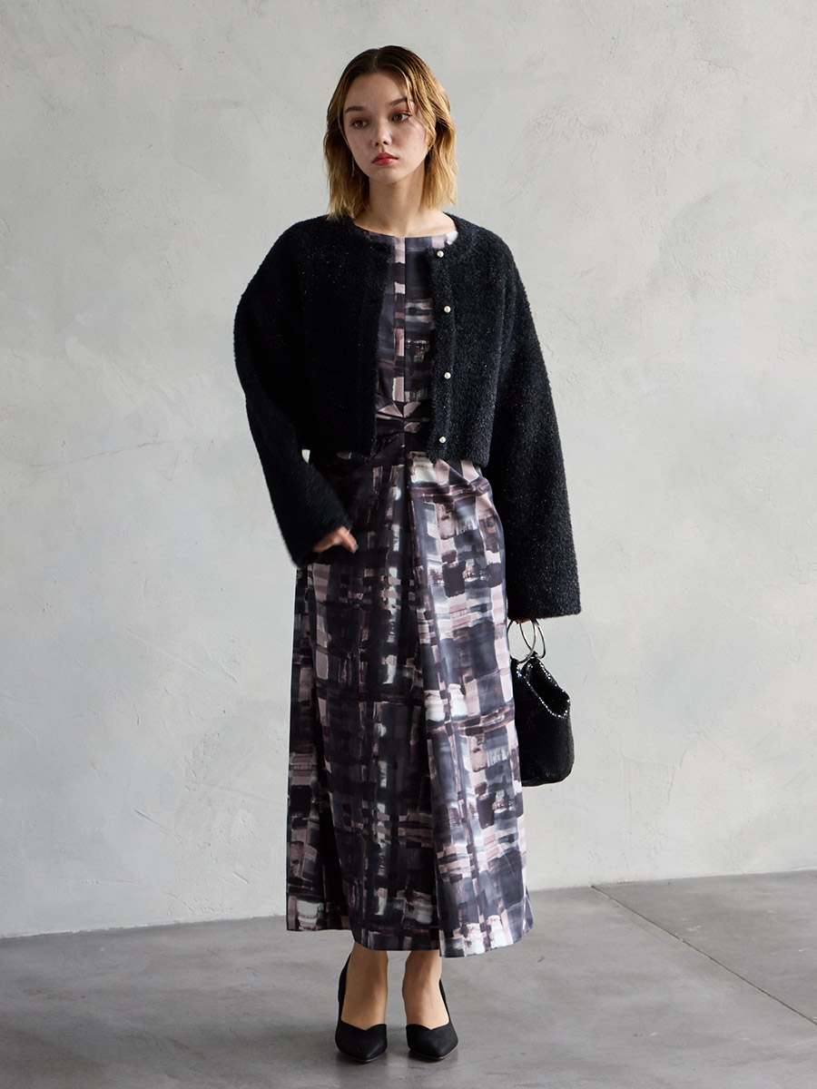 首元が詰まっているのでネックレスやイヤリングを合わせると顔周りを明るく見せてくれます。