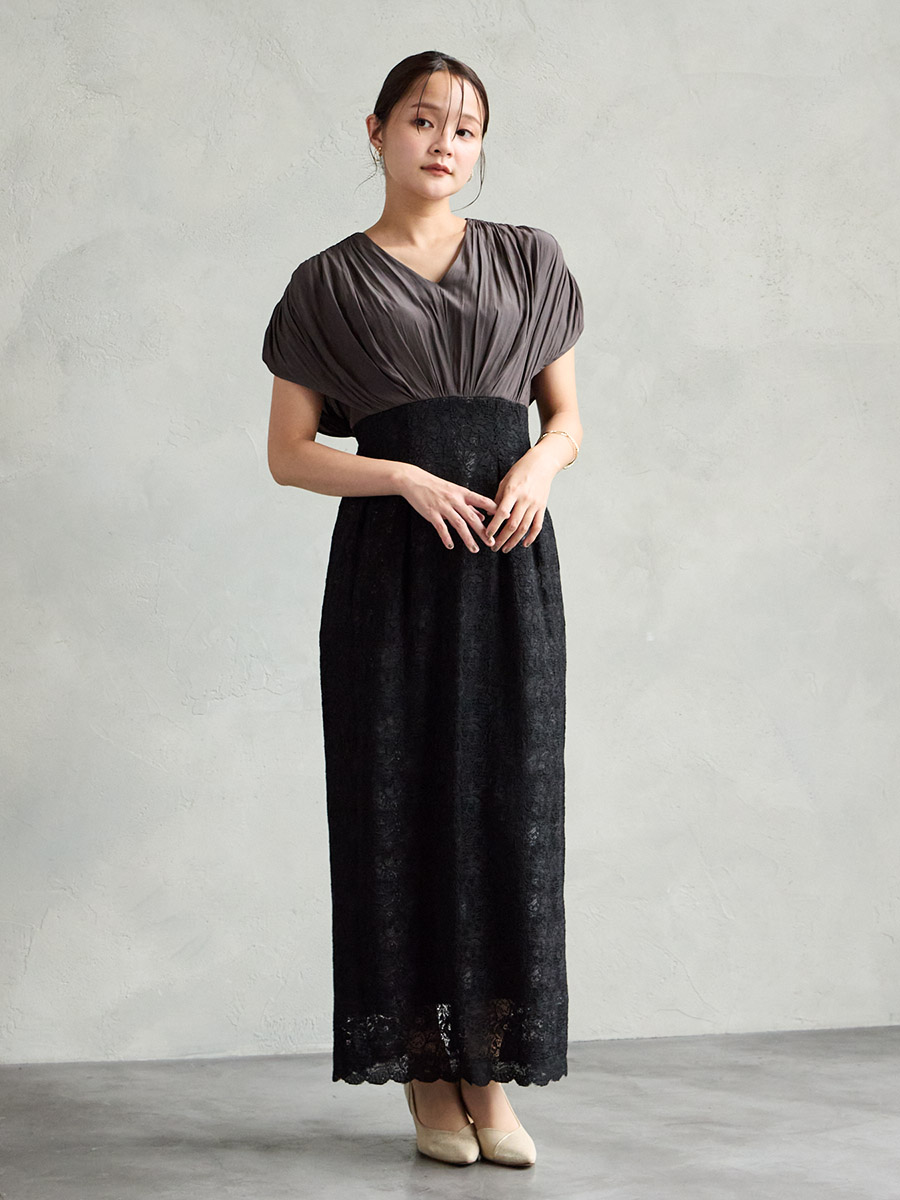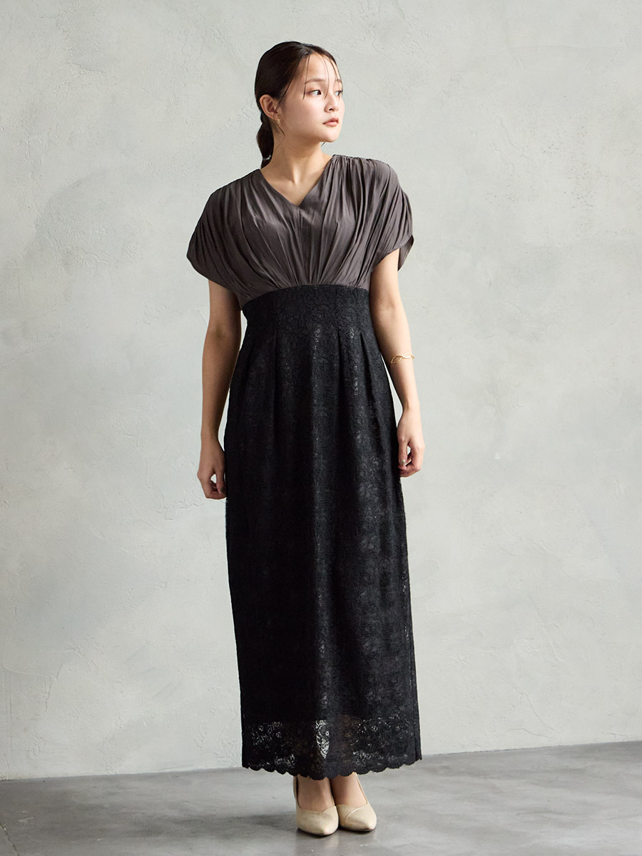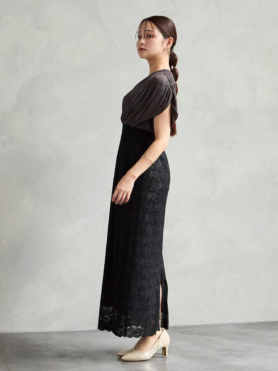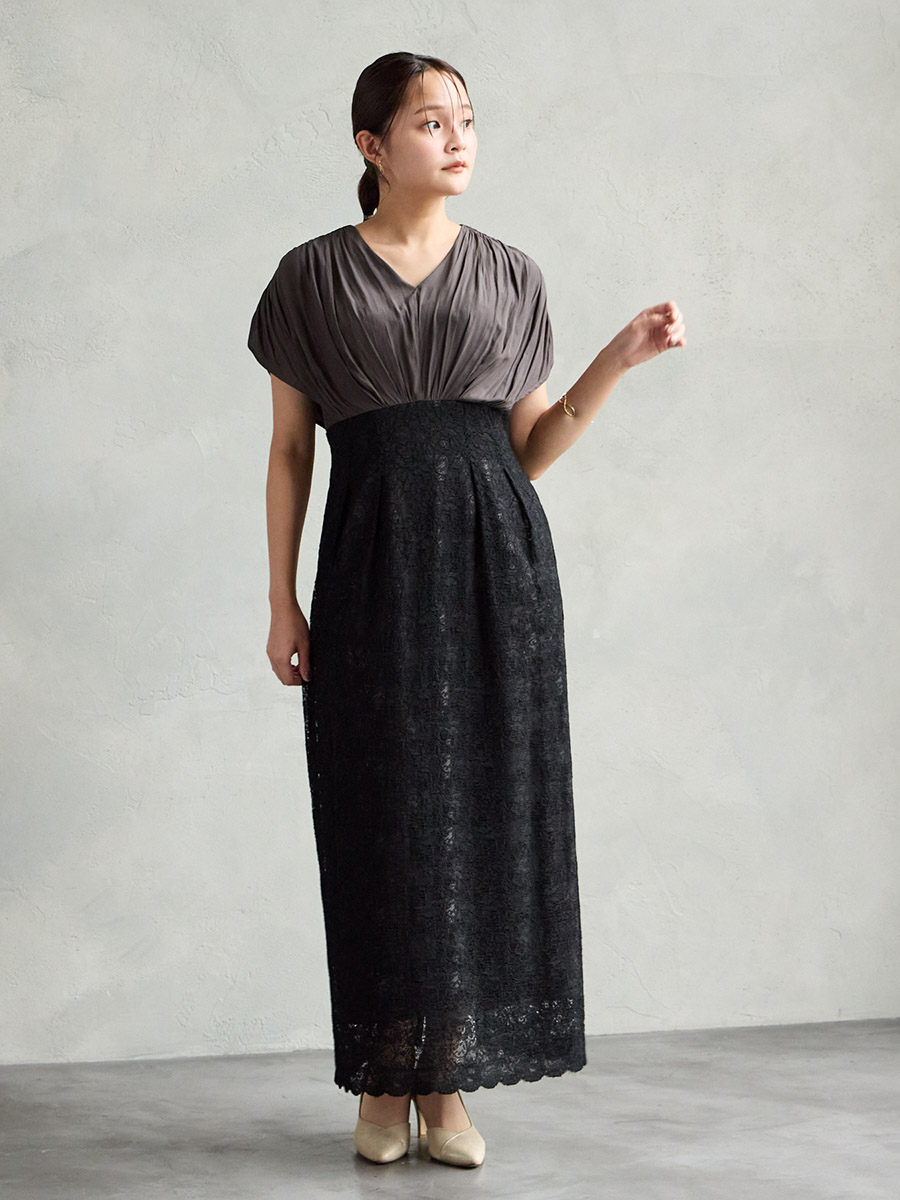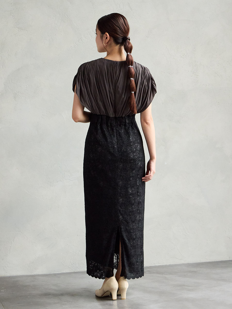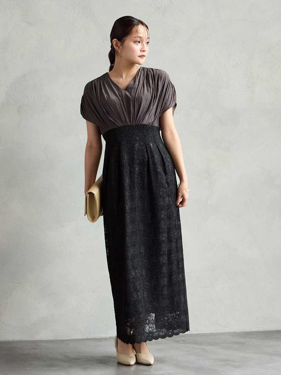 割線サテン×ラッセルレースハイウエストタイトドレス