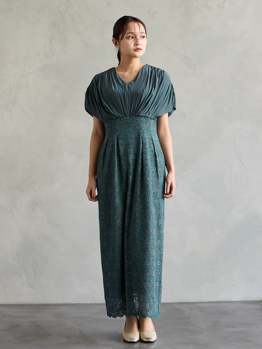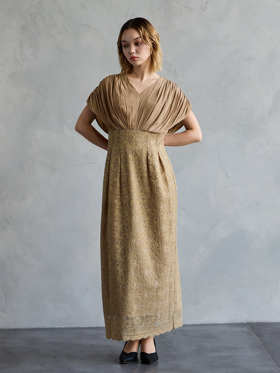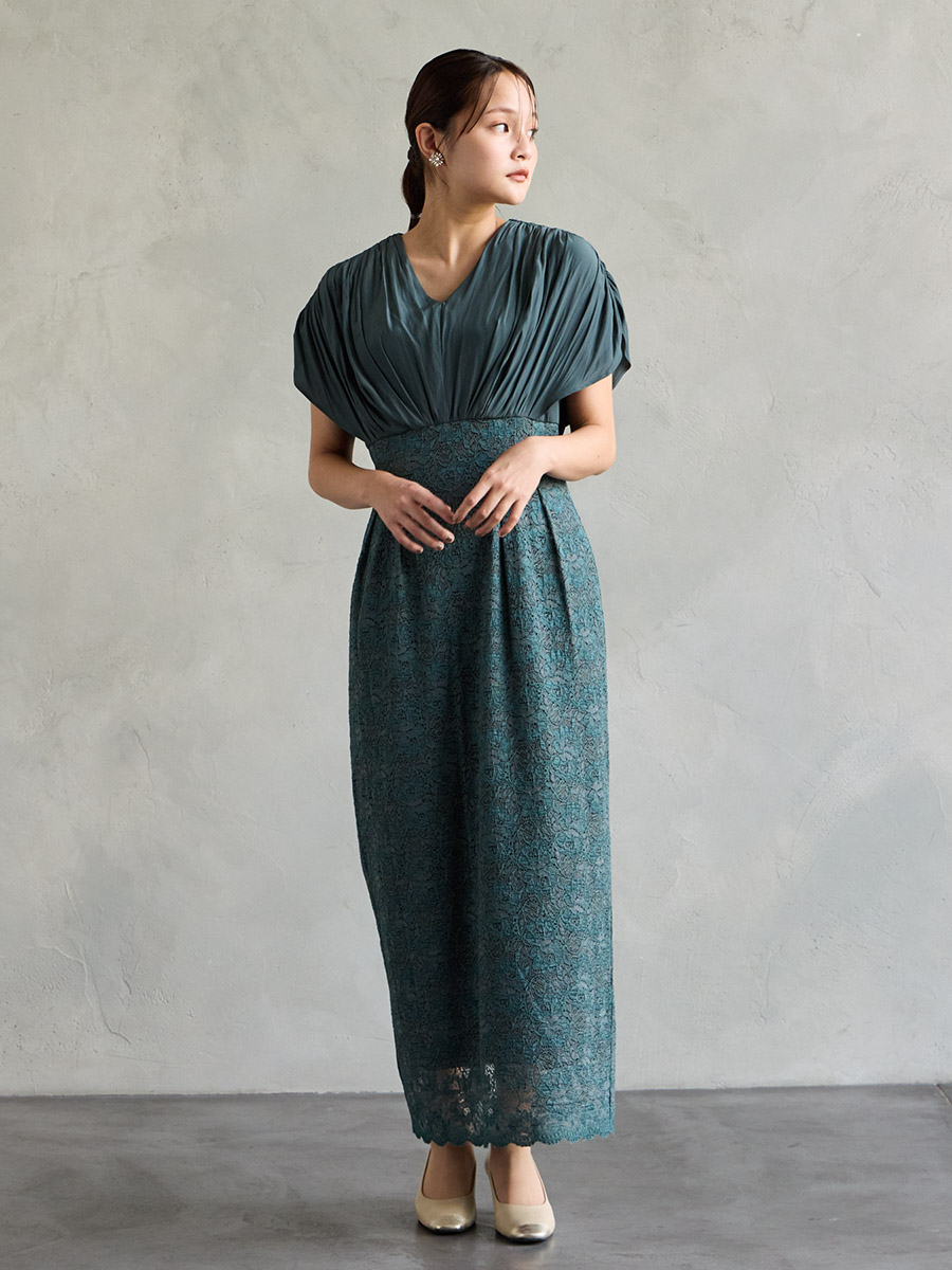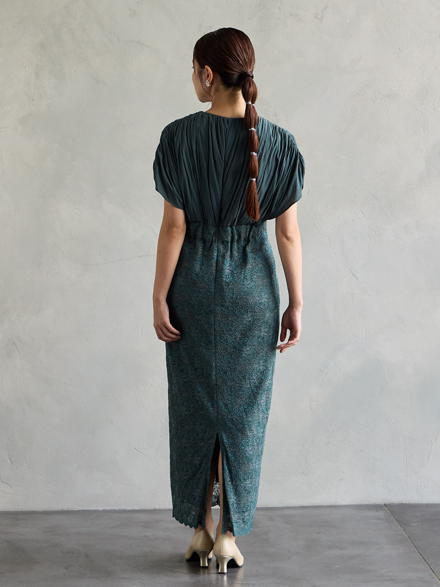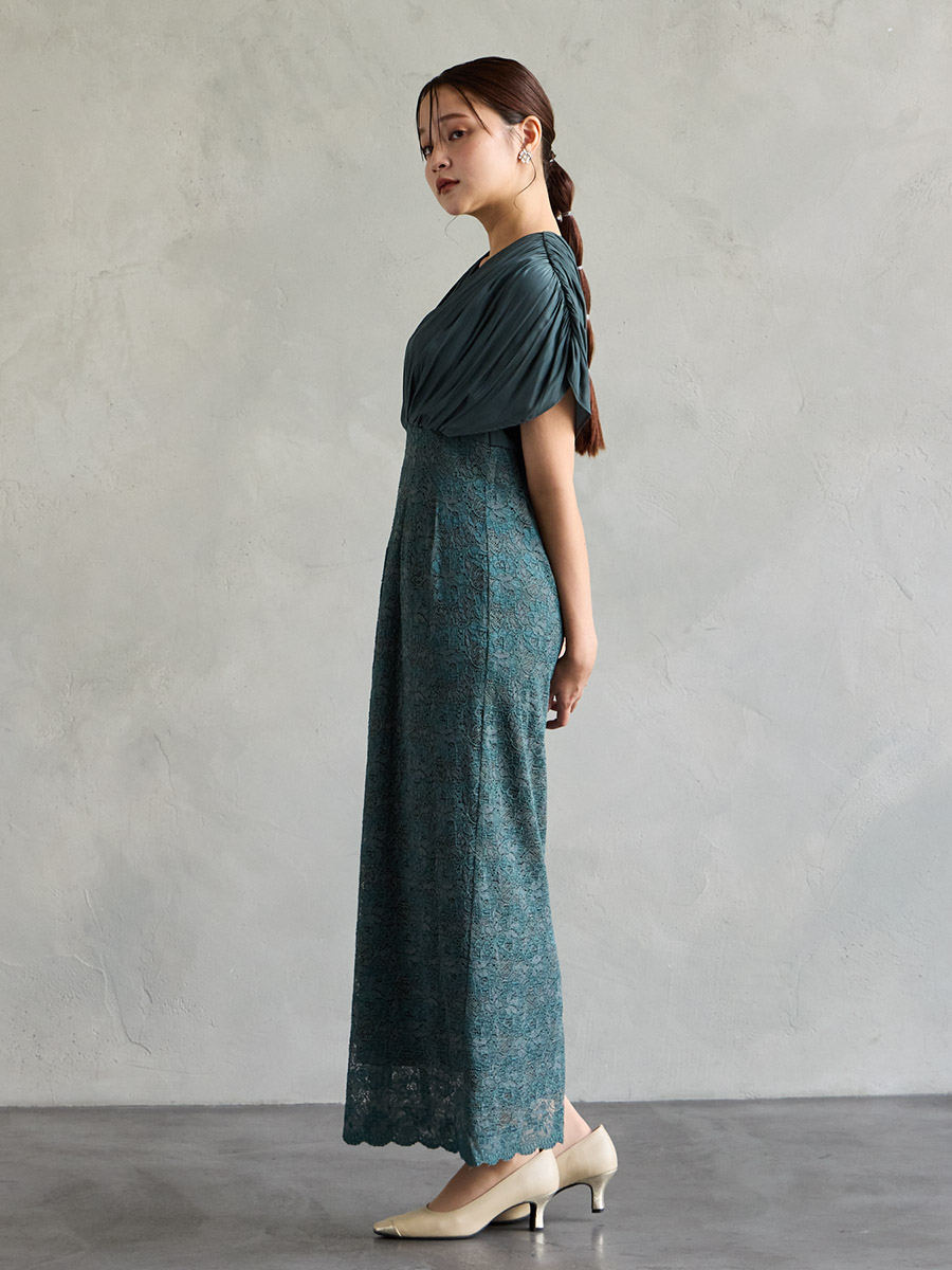 割線サテン×ラッセルレースハイウエストタイトドレス