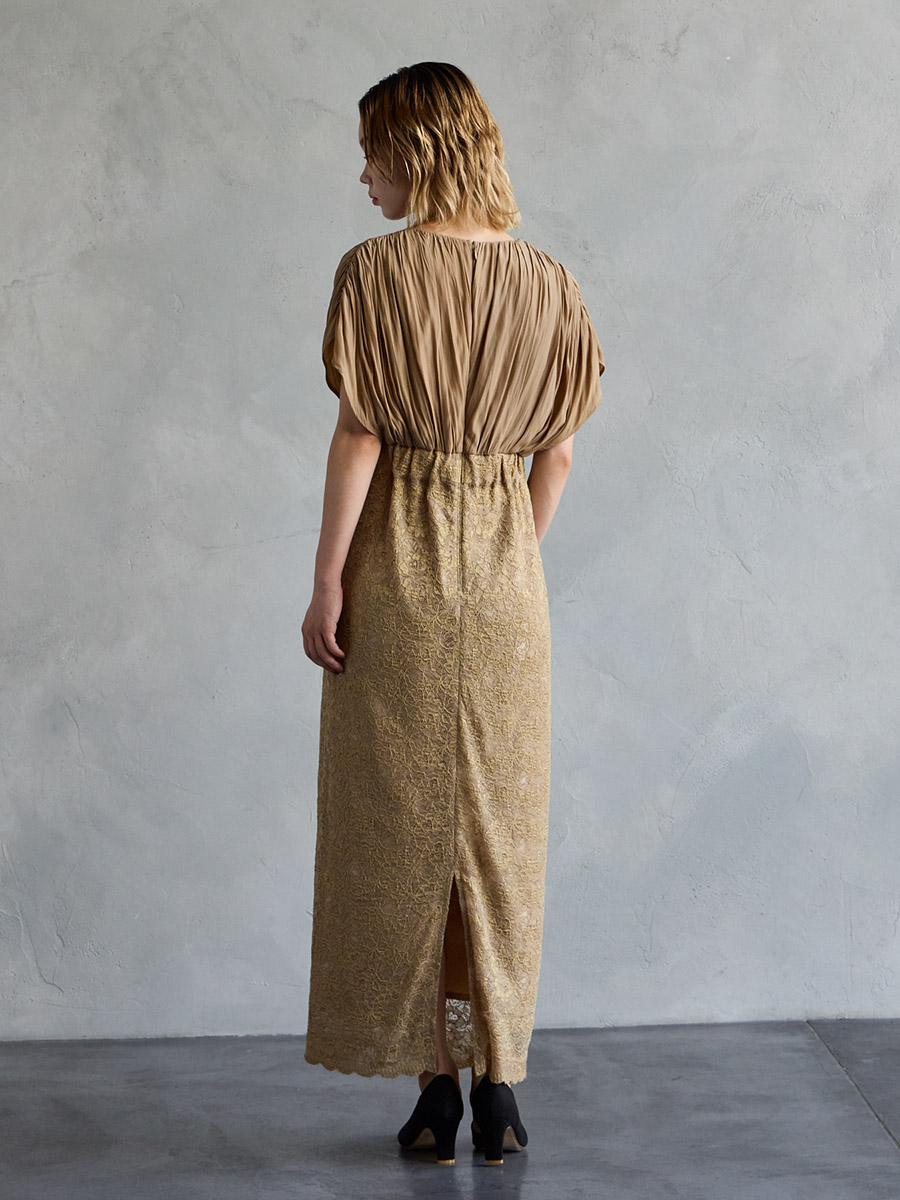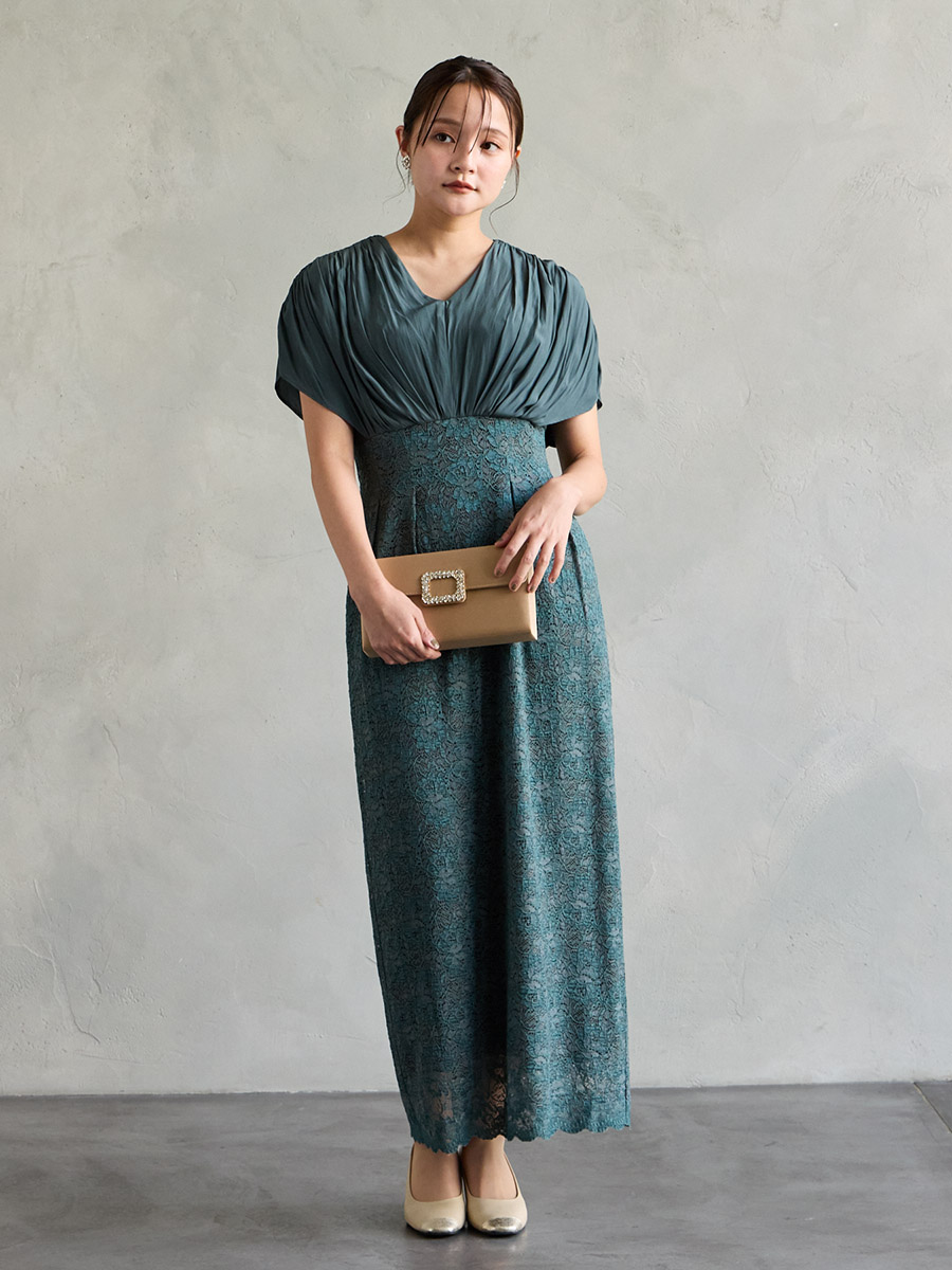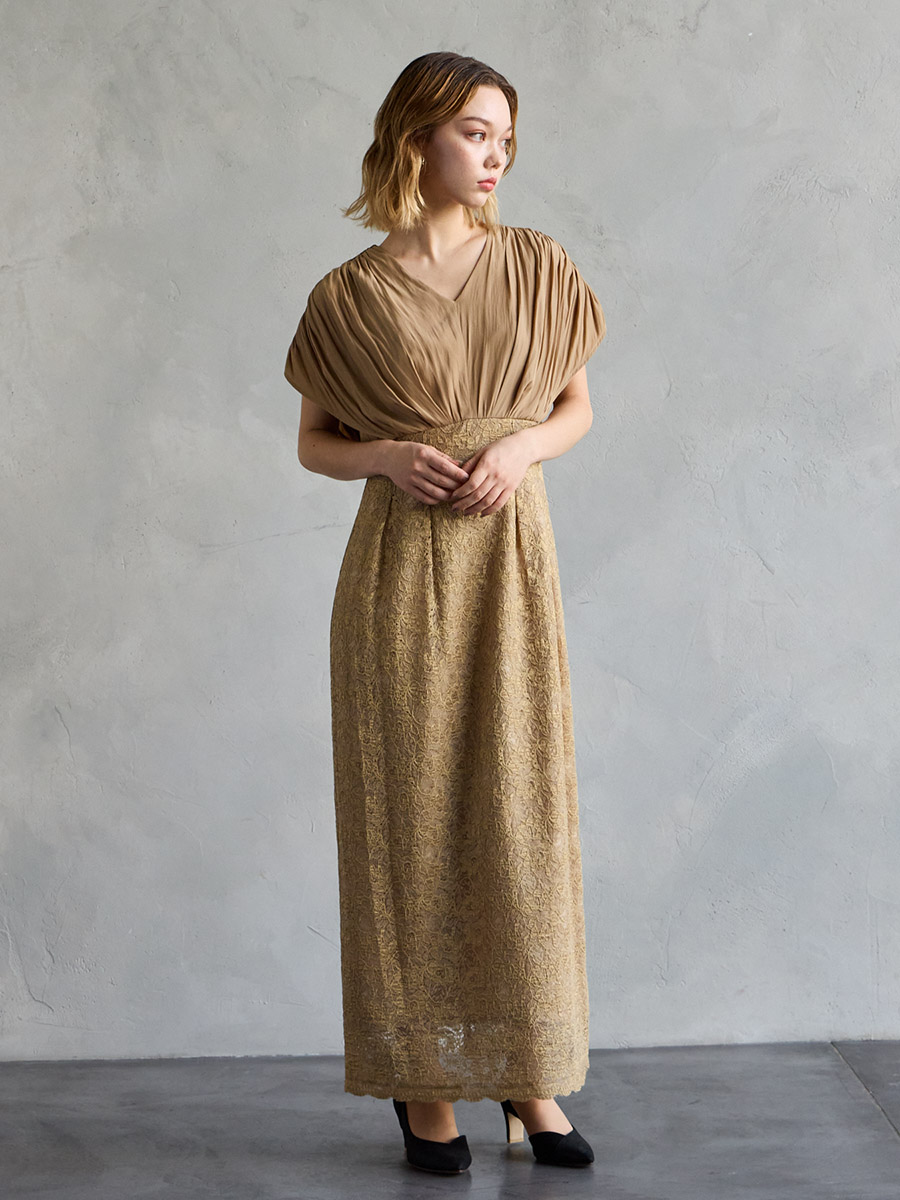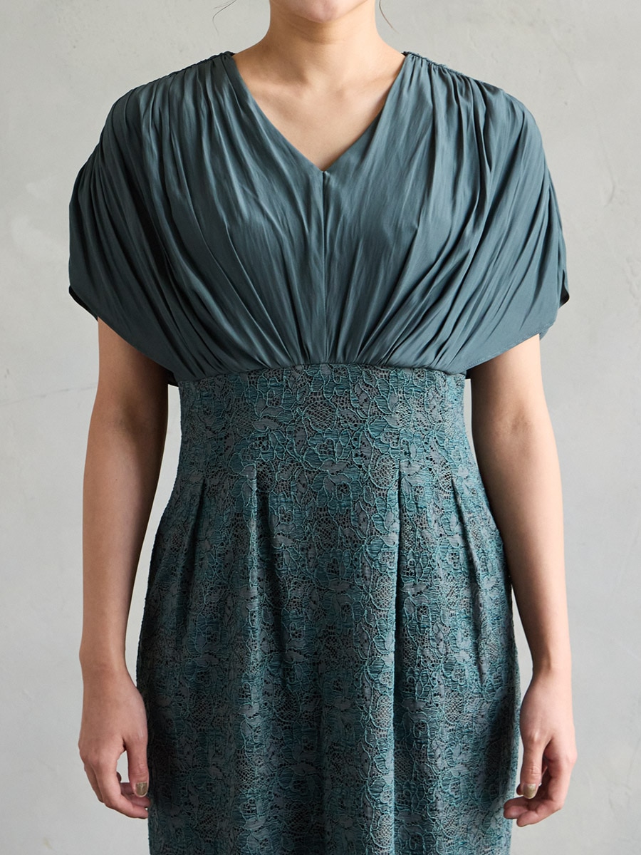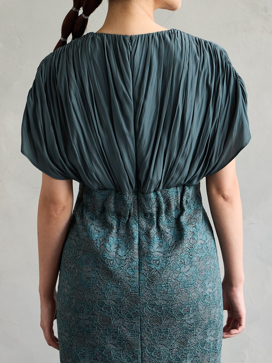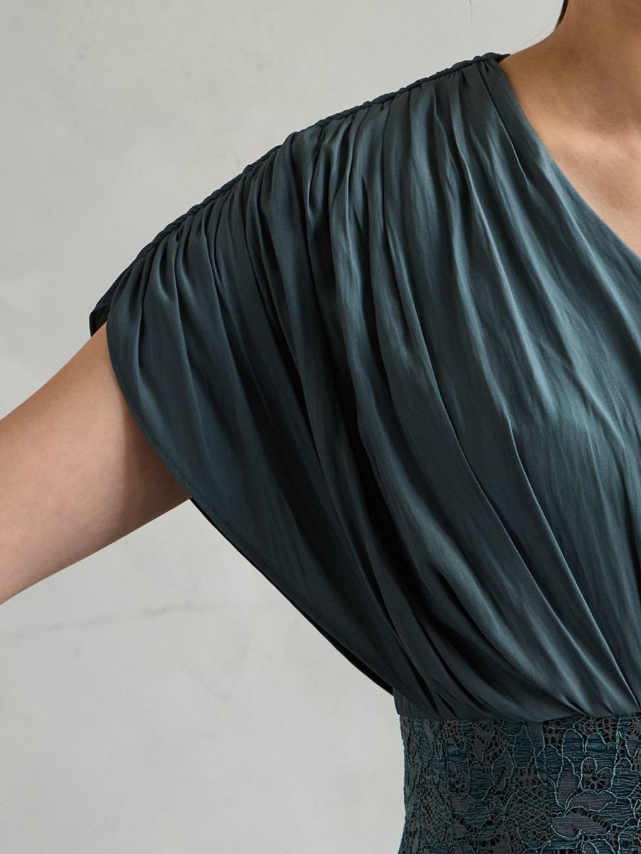割線サテン×ラッセルレースハイウエストタイトドレス