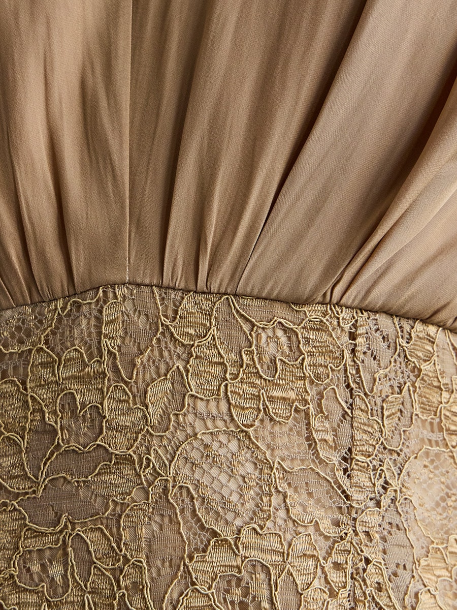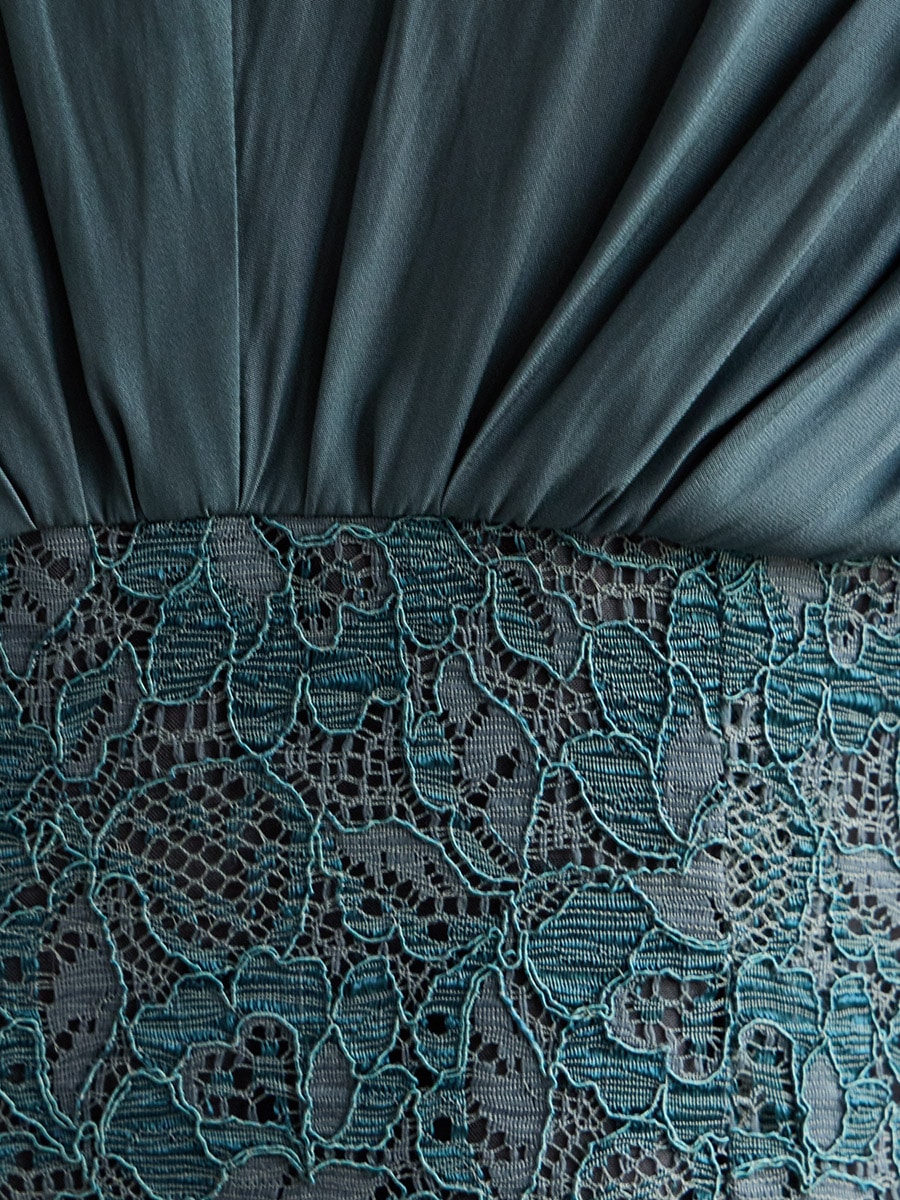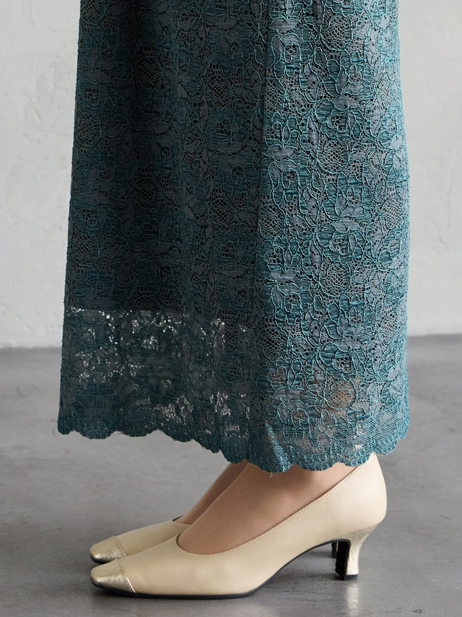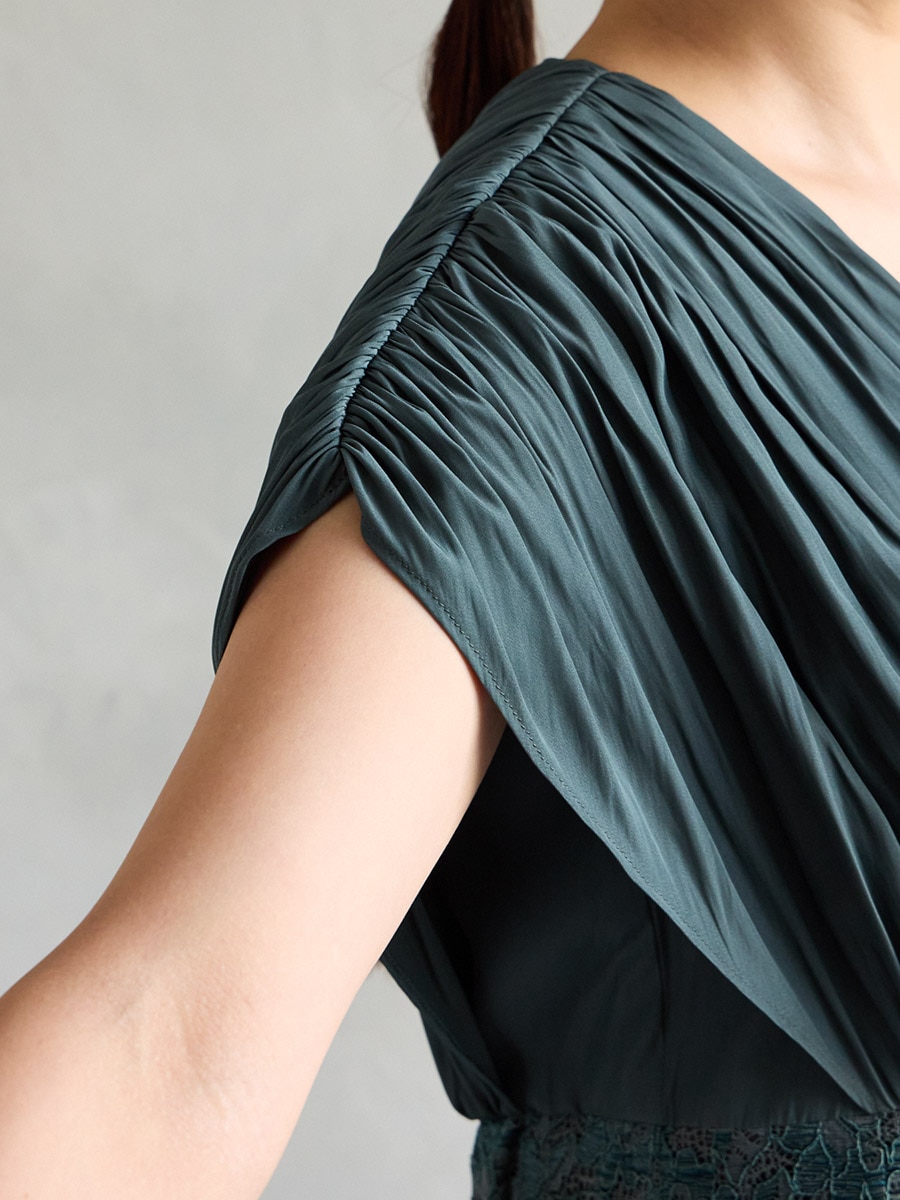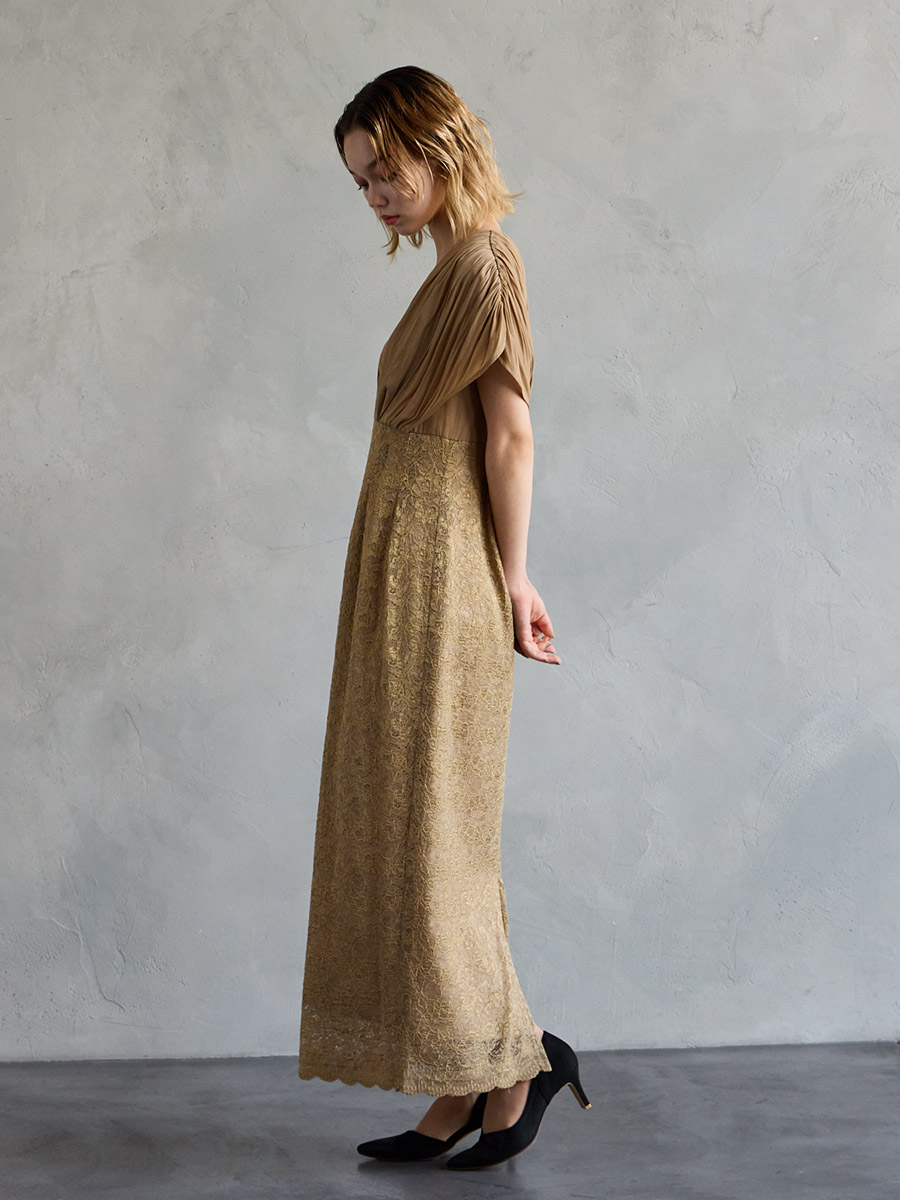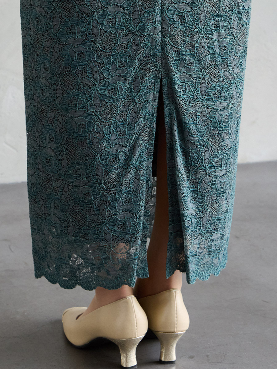 割線サテン×ラッセルレースハイウエストタイトドレス