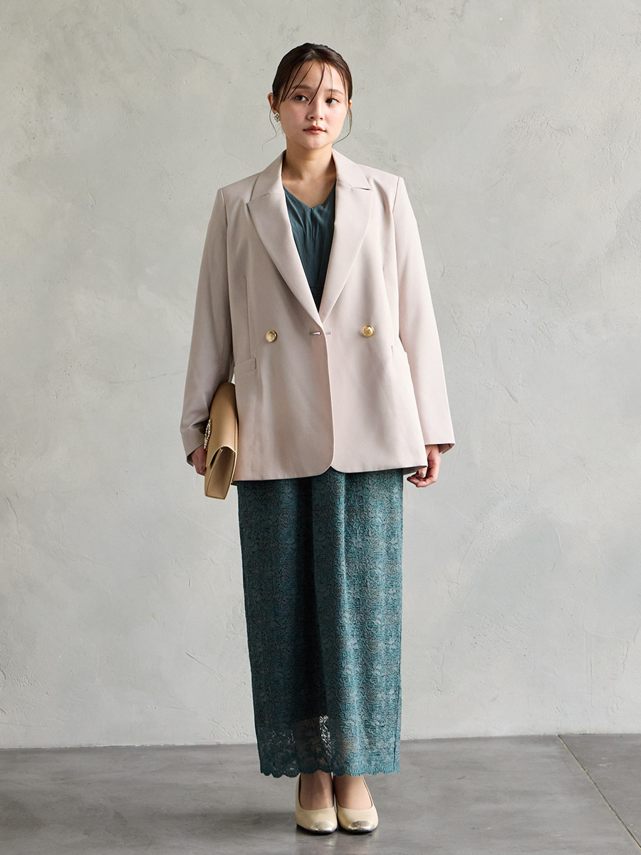 異素材合わせがフォーマルすぎない印象に
