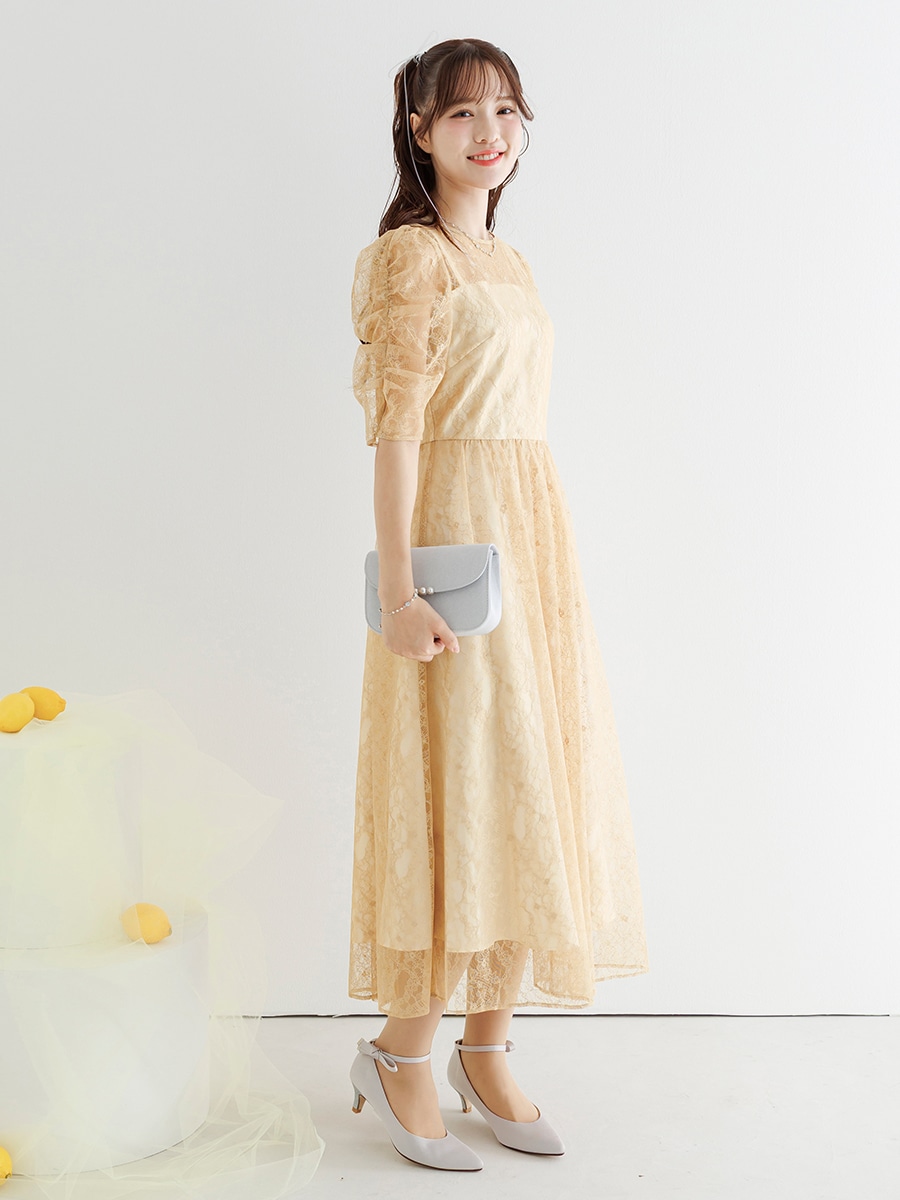 ラメフラワーレース×美シルエットで叶える、品のある華やかなドレス。