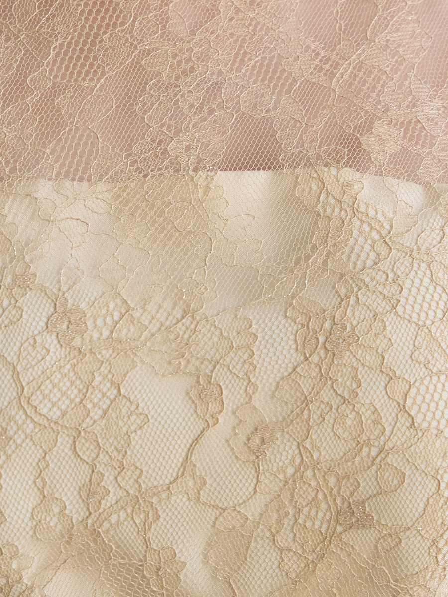 ・シルバーラメを織り込んだ、繊細なフラワーモチーフのレースを使用